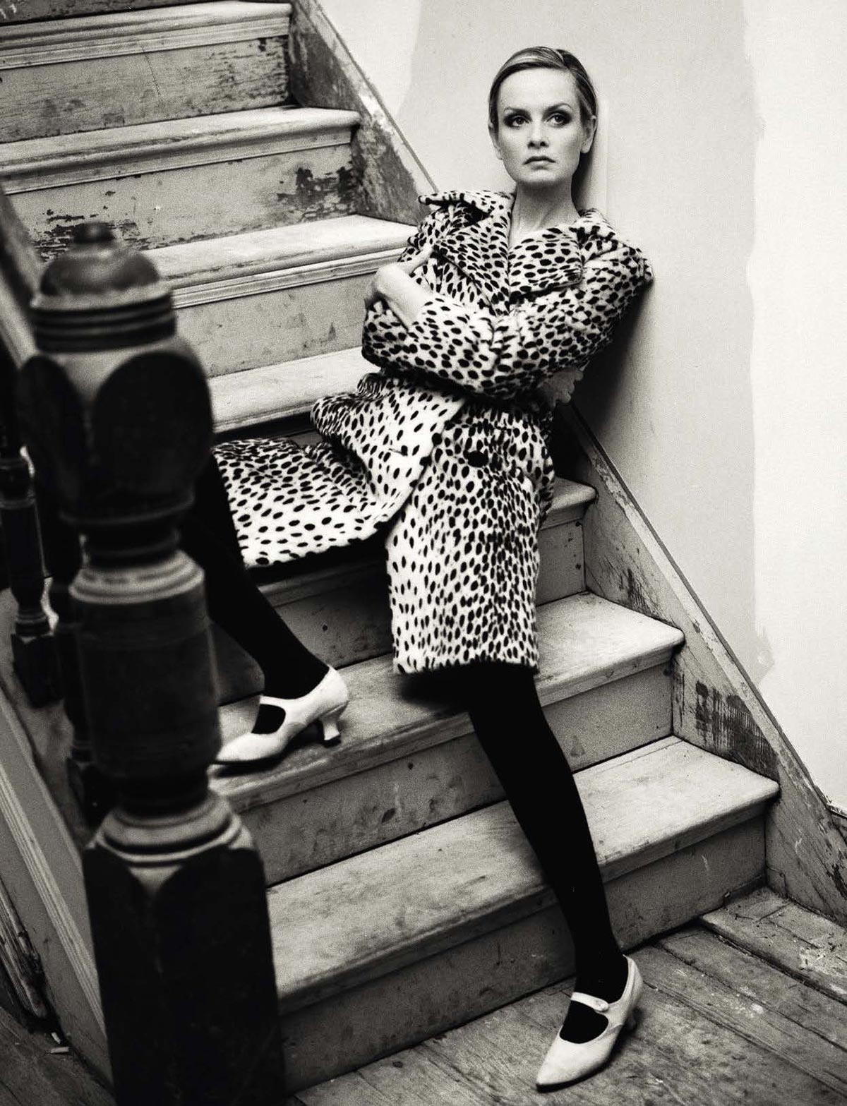 15. Leopard coats and black tights never fail, as demonstrated here by Twiggy. Go full mod with a Mary Jane shoe.