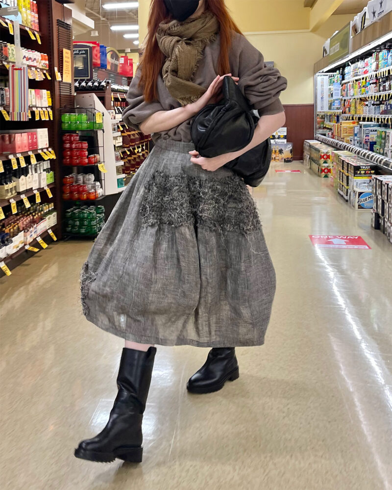 Anyone familiar with the legendary Soho boutique If will recognize the name Ivan Grundahl. If Boutique has carried the Danish designer for many years and if you cruise If’s famous basement sale you will find TONS of seriously marked down Ivan Grundahl. If you ever get the chance in life, you must go look at the If Boutique basment sale. It happens twice a year and it’s some of the best shopping and people-watching you’ll experience in your life. The skirt I’m wearing above is by Ivan Grundahl and I have a matching wrap jacket that goes with it, but here I am wearing it with a Stylenanda sweatshirt instead. And yes, I am wearing a petticoat under the Ivan Grundahl skirt. They really do come in handy!
