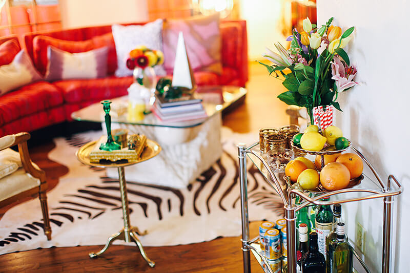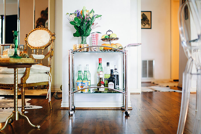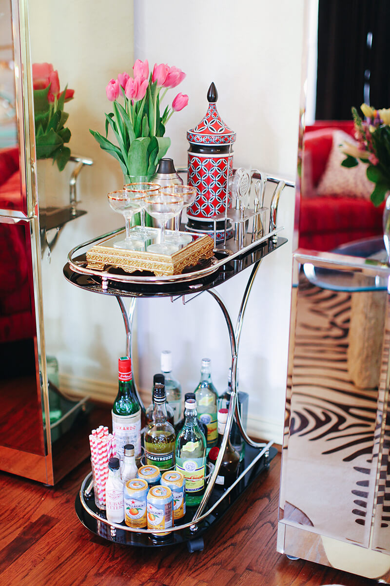 I was out picking up my dry cleaning today and I popped into a nearby consignment store on a whim (Dulce Consignment here in Dallas). When I saw they had just recieved four beautiful bar carts I flipped out. Then I saw how cheap they were and I really flipped out. I snatched one up for me and another for my boyfriend. We had been looking for a bar cart for his place before we threw our party but they were all either too expensive or not right. I guess you have to let your bar cart find you.