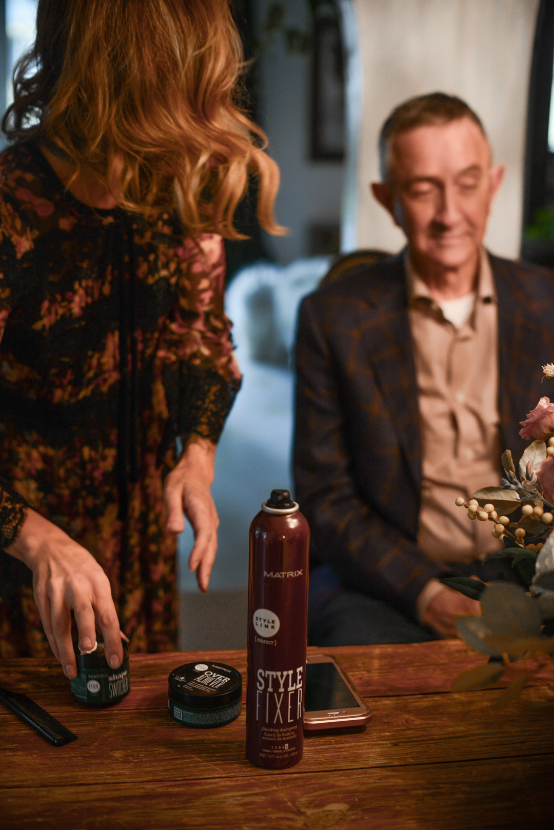 On the day of, the stylists arrived three hours before the wedding and I did my makeup myself while Danielle styled my hair. I chose to do my makeup myself because I actually find doing my makeup relaxing. I was keyed up in the hours before we walked down the aisle! It is pretty chaotic finding time to get ready in the midst of handling wedding details and making last minute decisions. Being tucked away with Matrix’s team in my mom’s bedroom with my sister, my best friends, and my mom helped calm my nerves considerably. It was a really special moment. My husband, my dad, and our officiant also got their hair done by Matrix’s team and the guys all loved getting their hair too.