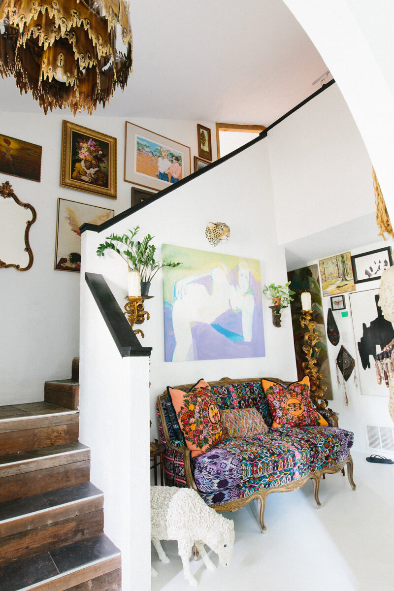 Don’t get hung up on finding a piece you feel is 100% perfect. Very often you’ll find the humdrum little landscape painting you picked up at Salvation Army for $25 will really start to sing when you bring in another painting that compliments it. As my mom says, “You may not completely love something you bought for a room at first, but you when you find a great piece that can act as it’s foil, that is when it will really start to come together.” Part of what intimidates some people about putting together an eclectic room is focusing on finding the “perfect” pieces, when it’s actually much easier to let the pieces of a room come together naturally like a puzzle. More than half of the art in my living room came from the thrift store or the side of the road, and a lot of the paintings didn’t really come to life until they were hung with other ones. Then they start to form a cool eclectic collection.