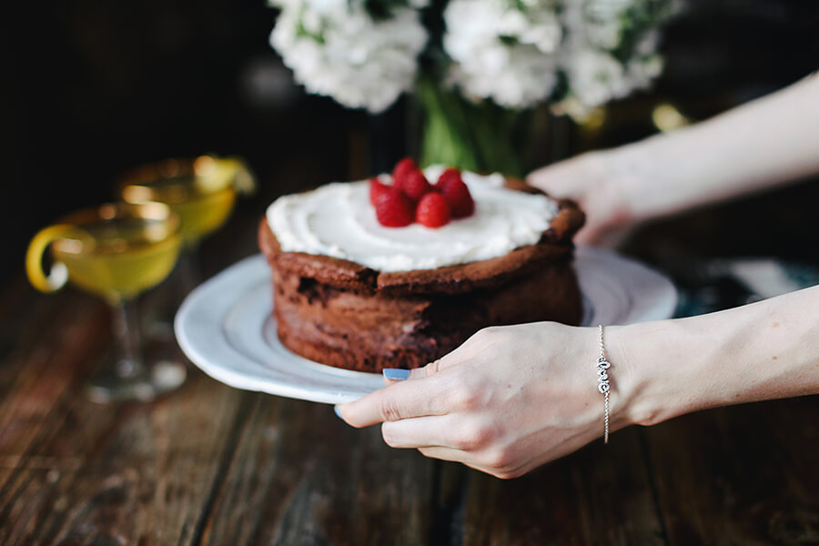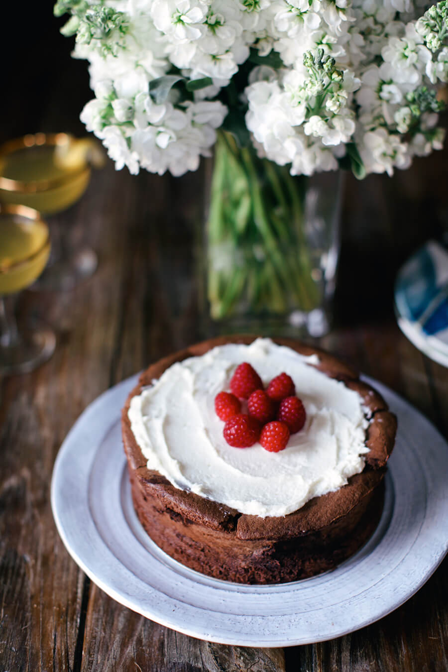For an elegant and surprisingly easy dessert, I made an Italian flourless chocolate cake topped with mascarpone whipped cream. This was ridiculously fast and the texture was wonderfully mousse-like. Bonus, this dessert is a good option if your Valentine is gluten-free!