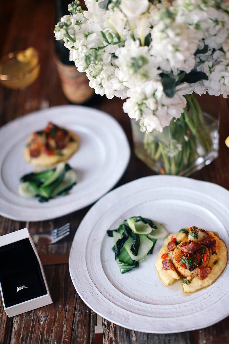 Are you planning your Valentines day yet? Me too! Valentines is one of my favorite holidays and I have been so excited to share this post with you. Jeff and I teamed up with Pandora to give you some ideas on how to spoil your Valentine this February 14 with some beautiful gifts and a decadent dinner menu! As someone who loves to cook, food has always been the way to my heart. There is nothing more romantic to me than spending the day cooking up a bountiful feast with my favorite person. The challenge of making a restaurant-worthy dinner can seem daunting, but it doesn’t have to be! We pulled this off in no time flat, with delicious results.
