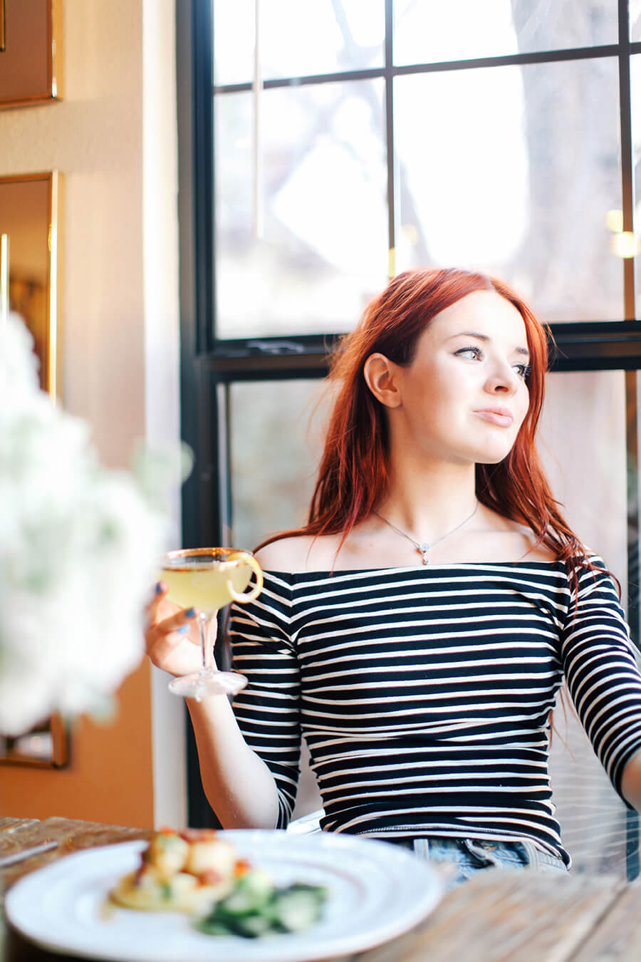 This was the right time to enjoy a cocktail! Wearing a heart pendant necklace with an ASOS shirt and vintage jeans.