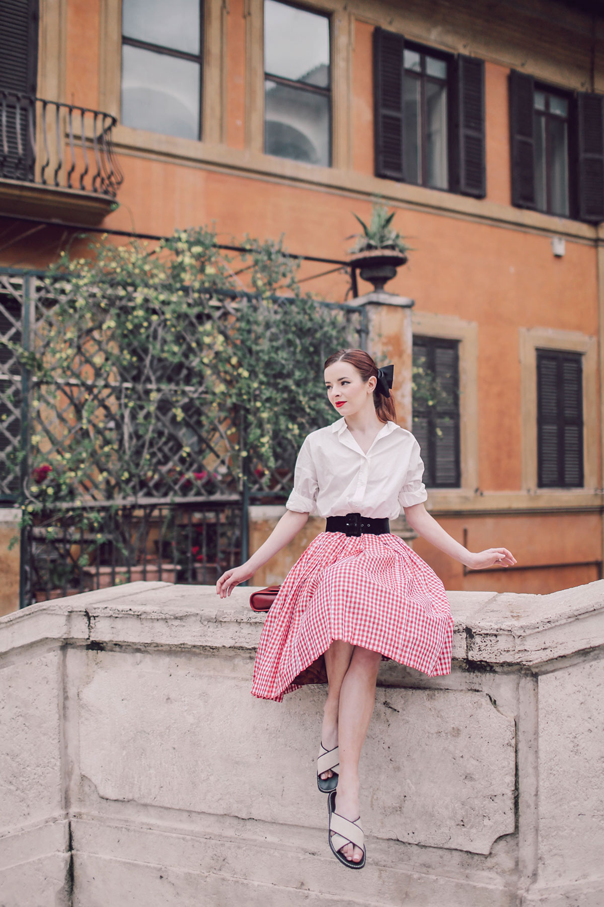 That gingham skirt and white shirt combo is just adorable – you remind me of Audrey in Roman Holiday! x