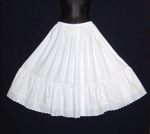 A cotton petticoat is breezy and comfortable, and the weight of gathered cotton give them a beautiful hang on the body. The petticoat above comes The Petticoat Boutique, a custom retailer on Etsy who makes these cotton petticoats in a variety of lengths. You could order a longer one and a shorter one. Keep this in mind if you are ordering one of their petticoats: Knee-length petticoats are about 20-23 inches long and tea-length petticoats are about 25-28 inches long. They also offer plus-size petticoats under this listing. Pricing starts at 36 dollars.