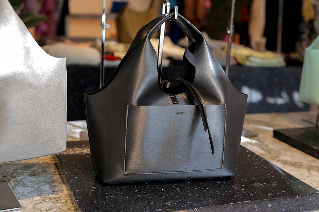 KWONN is the result of four years of Nicole’s own research and experimentation. “I started off sewing prototypes in my bedroom.” she explained to me. “I wanted a soft easy bag that I could carry anywhere. I had to create the sustainable bag I could never find, that would last forever, at the right price point.” Kwon spent years testing out vegan fabrics and different factories to come up with a bag that aligned with her dream and her values. As a new mother and former designer, Nicole was highly conscious of the harmful toxins that are often used in fabric treatments. The fabric she chose for these bags is a toxin and PVC-free plant-based recycled polyurethane that is made in Japan, and they are sewn in the garment district of New York by people with four decades of experience working in designer bags.
