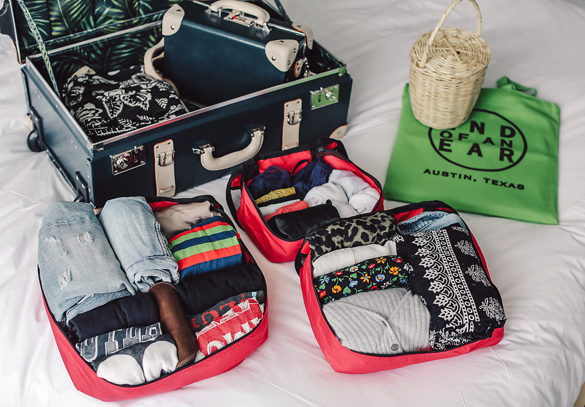 I use the brand Shacke Pak and they come in a four pack of varying sizes. For week long tips I usually up all four sizes, but for weekend trips like this one just two packing cubes did the trick for me.