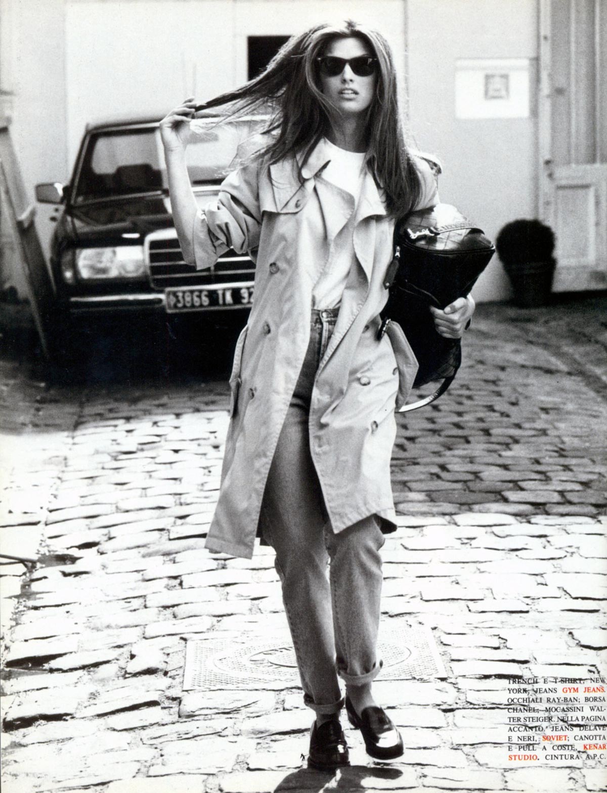 17. This shot by Steven Meisel in 1992 Vogue Italia shows that a trench, white tee, mom jeans and loafers look as good in 2018 as they did in ’92.