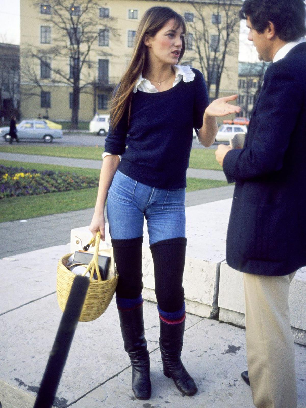 3. Why not take a cue from Jane and style a white dolly blouse under a scoop neck navy sweater? All the better if you pair with thigh high boots.