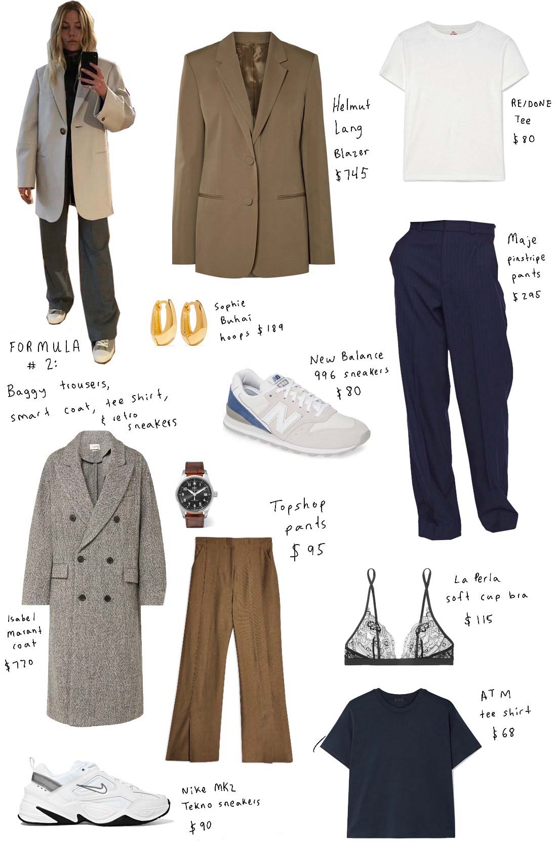 I love that 2019 has seen the rise of the slouchy oversized trouser. It’s a chic way to look put together, without looking like you’re trying hard. If you stuck to slouchy or ribbed t-shirts, sneakers, and a good looking trench coat or contrast color blazer, you could have a great uniform for the rest of your life! There are so many great sneakers right now. I love these Nike sneakers for this look.