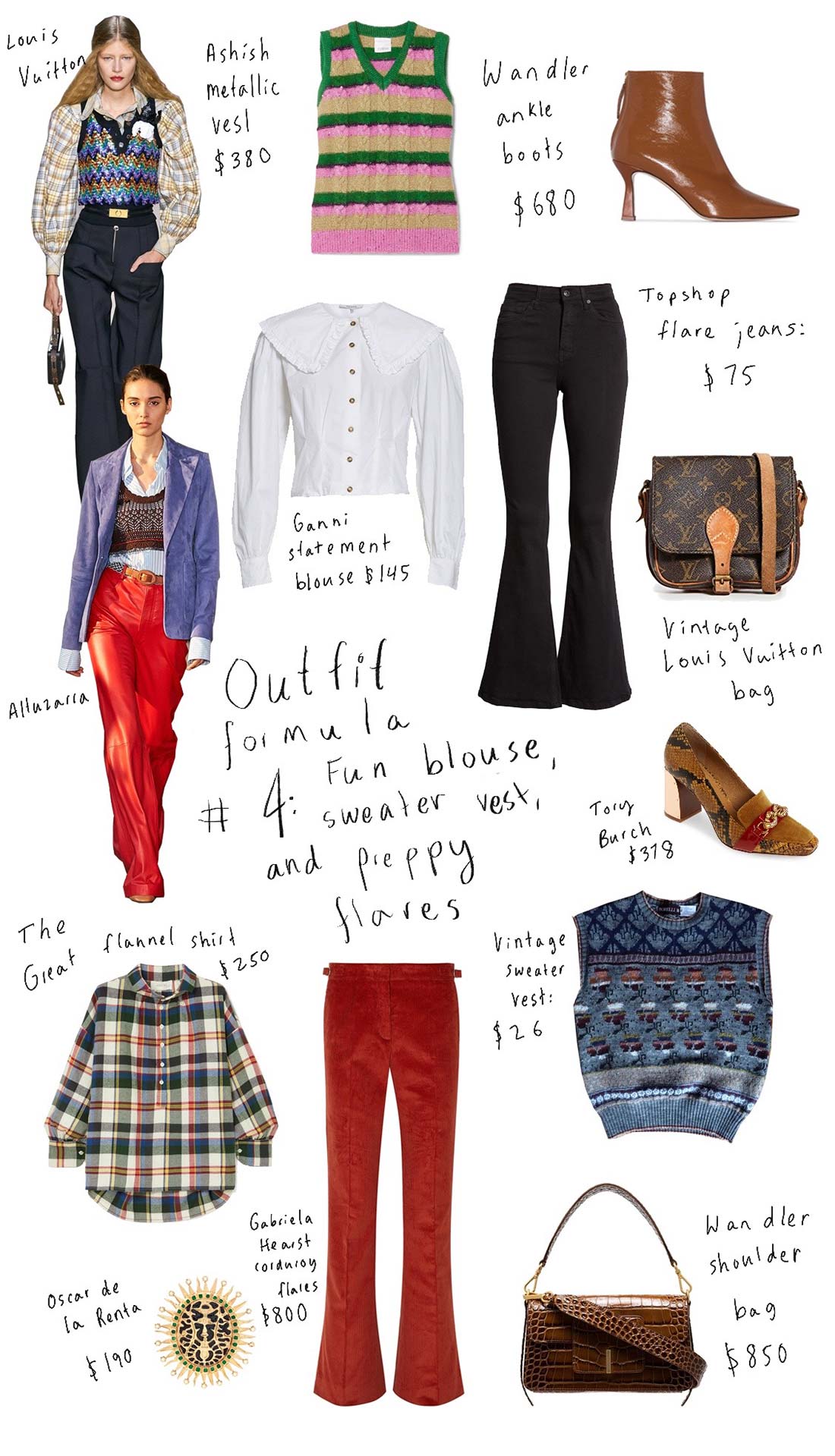 I got very excited when I saw the Altuzarra and Louis Vuitton shows from Paris this week. Kooky 70s prep is a style trend we could all be having a lot of fun with. Find a shrunken vest to layer over a printed blouse (this is easy to score when you shop vintage, try Ebay for the vests). Add high waisted bootcut pants or jeans (bonus points if they’re corduroy) and have yourself a party adding neckerchiefs, brooches, or flashy belts to the mix.