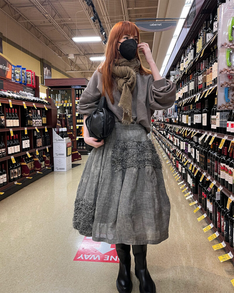 Anyone familiar with the legendary Soho boutique If will recognize the name Ivan Grundahl. If Boutique has carried the Danish designer for many years and if you cruise If’s famous basement sale you will find TONS of seriously marked down Ivan Grundahl. If you ever get the chance in life, you must go look at the If Boutique basment sale. It happens twice a year and it’s some of the best shopping and people-watching you’ll experience in your life. The skirt I’m wearing above is by Ivan Grundahl and I have a matching wrap jacket that goes with it, but here I am wearing it with a Stylenanda sweatshirt instead. And yes, I am wearing a petticoat under the Ivan Grundahl skirt. They really do come in handy!