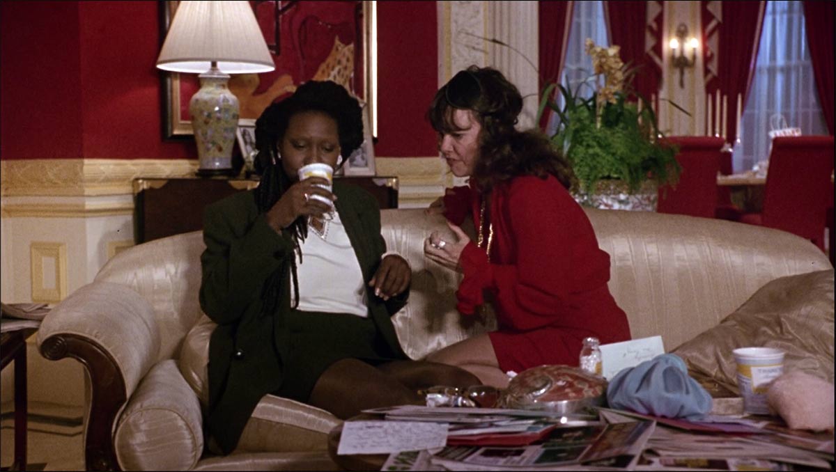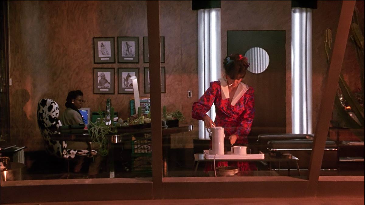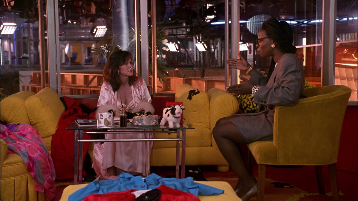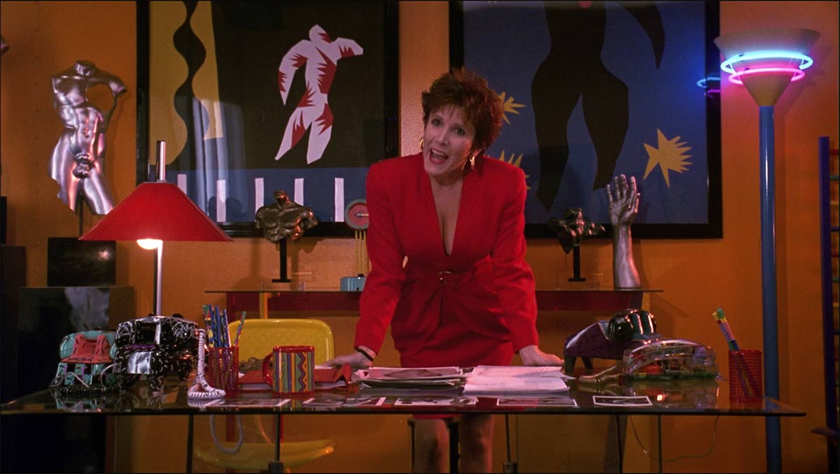 Over the weekend, I had the immense pleasure of watching Soapdish (1991) for the first time, directed by Michael Hoffman and starring Sally Field, Whoopi Goldberg, Carrie Fisher, Kevin Kline, Robert Downey Jr, Elizabeth Shue and Cathy Moriarty. What a cast! I knew I was in for a treat when I saw Nolan Miller of Dynasty fame had done the costume design. I am still dying over the fantastic Memphis inspired set design and I am keeping my eyes peeled for anything cow print right now.