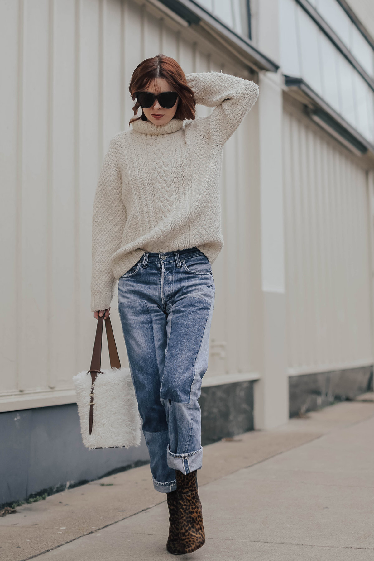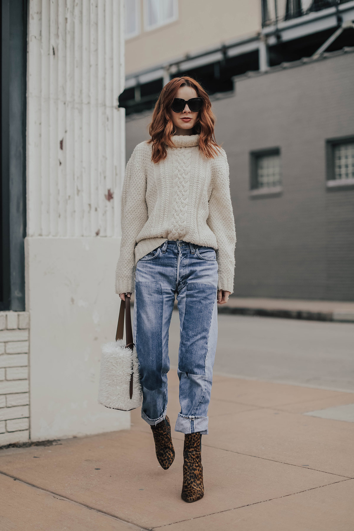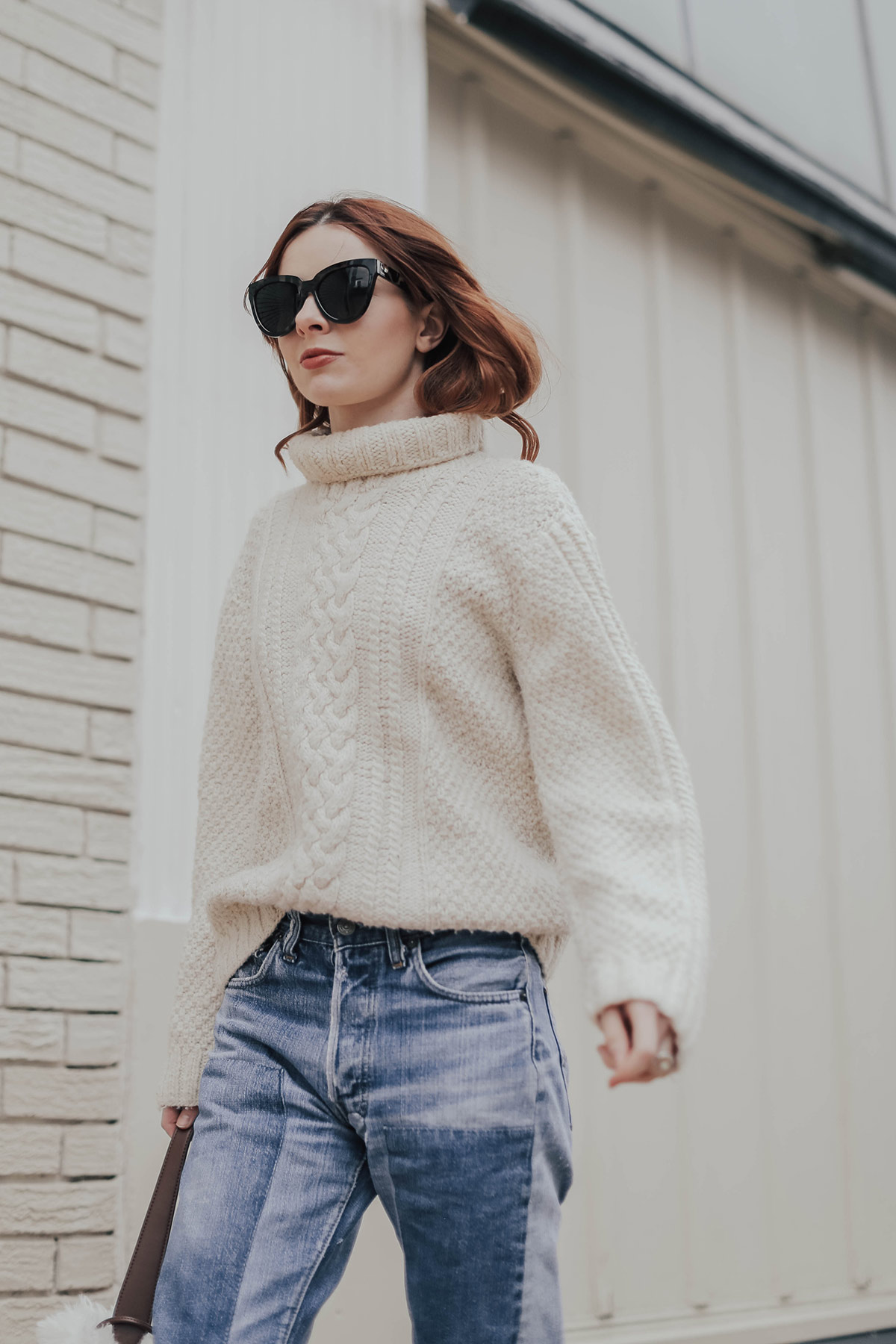 I posted this look on Instagram this week an was inundated with questions and DMs about my cable knit turtleneck. That makes me so happy because this sweater is probably the one item I’ve posted more frequently than anything else I own. The sweater is from a market in San Miguel de Allende in Mexico and I have had it for probably six years now. It looks good with everything and when I wear it I am reminded of some of my favorite shoots we’ve created for this blog. Obviously, I can’t tell you where to get this exact sweater. I think a lot of people would actually find it quite itchy if they wore, it is 100% alpaca wool.