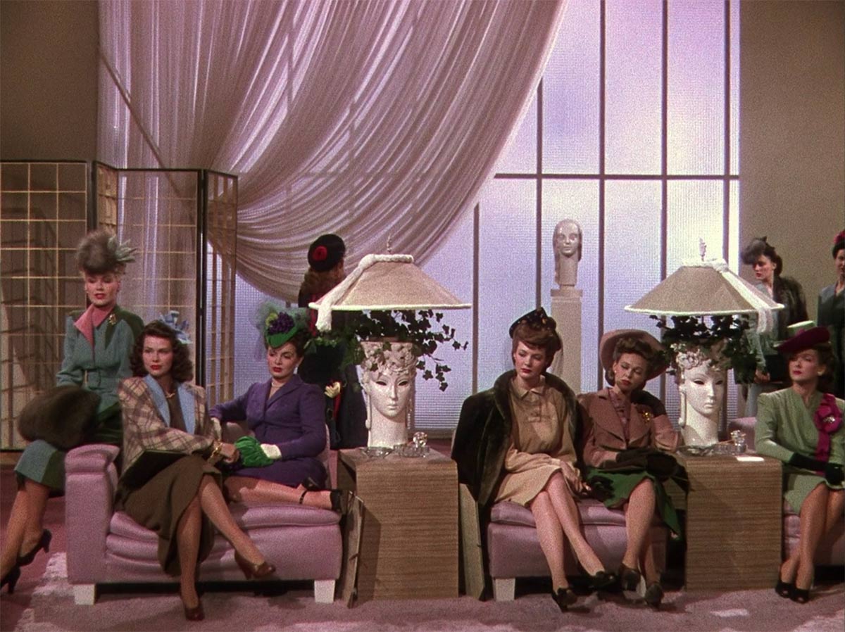 This musical starring Rita Hayworth and Gene Kelly isn’t as much a “fashion movie” in the literal sense that others on this list are, but because it is about a fashion magazine’s cover girl search I do believe it qualifies. The reason I come back to this movie again and again is because this is technicolor at it’s most vivid and stylized. The many costumes for the musical numbers in this one are amazing because of the technicolor. Below is my favorite capture from this movie, here hopeful would-be covergirls wait for their interview with the editor. I love the set designs of this movie, and I found myself making color palette swatches to reference for styling later! Everything about Gene Kelly is inherently stylish too, which enhances the “fashion” factor of this movie.