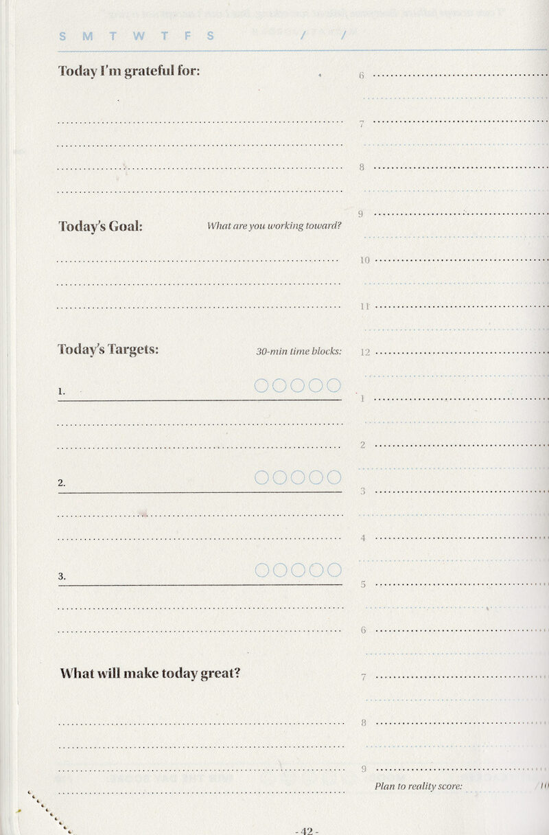 The Best Self Journal has it’s own weekly review and daily planning sections. I recommend watching Matt Ragland’s in-depth Best Self Journal review if you want a thorough tour of this journal. I use the Best Self daily planning format as a guide for my Hobonichi Daily pages, see below for an example.