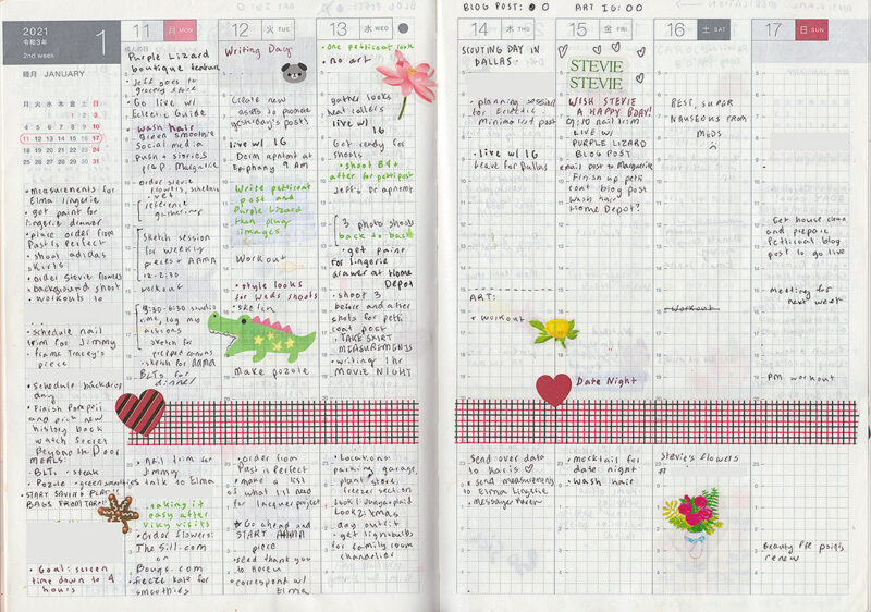 I’m still trying to find my perfect pen for my Hobonichi. So far I most like the Pilot G-2 gel pens. I also use Jellyroll Moonlight.06 colored gel pens. I do like to use a little bit of washi tape and stickers in my Hobonichi, and I get those from Mochi Things.