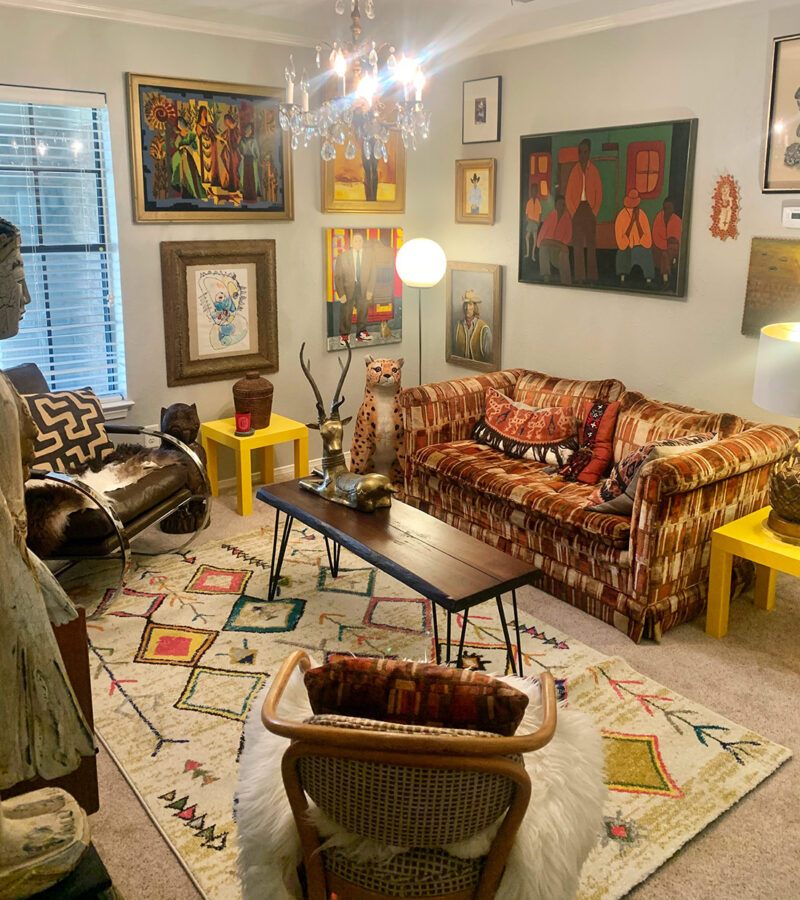 Don’t get hung up on finding a piece you feel is 100% perfect. Very often you’ll find the humdrum little landscape painting you picked up at Salvation Army for $25 will really start to sing when you bring in another painting that compliments it. As my mom says, “You may not completely love something you bought for a room at first, but you when you find a great piece that can act as it’s foil, that is when it will really start to come together.” Part of what intimidates some people about putting together an eclectic room is focusing on finding the “perfect” pieces, when it’s actually much easier to let the pieces of a room come together naturally like a puzzle. More than half of the art in my living room came from the thrift store or the side of the road, and a lot of the paintings didn’t really come to life until they were hung with other ones. Then they start to form a cool eclectic collection.