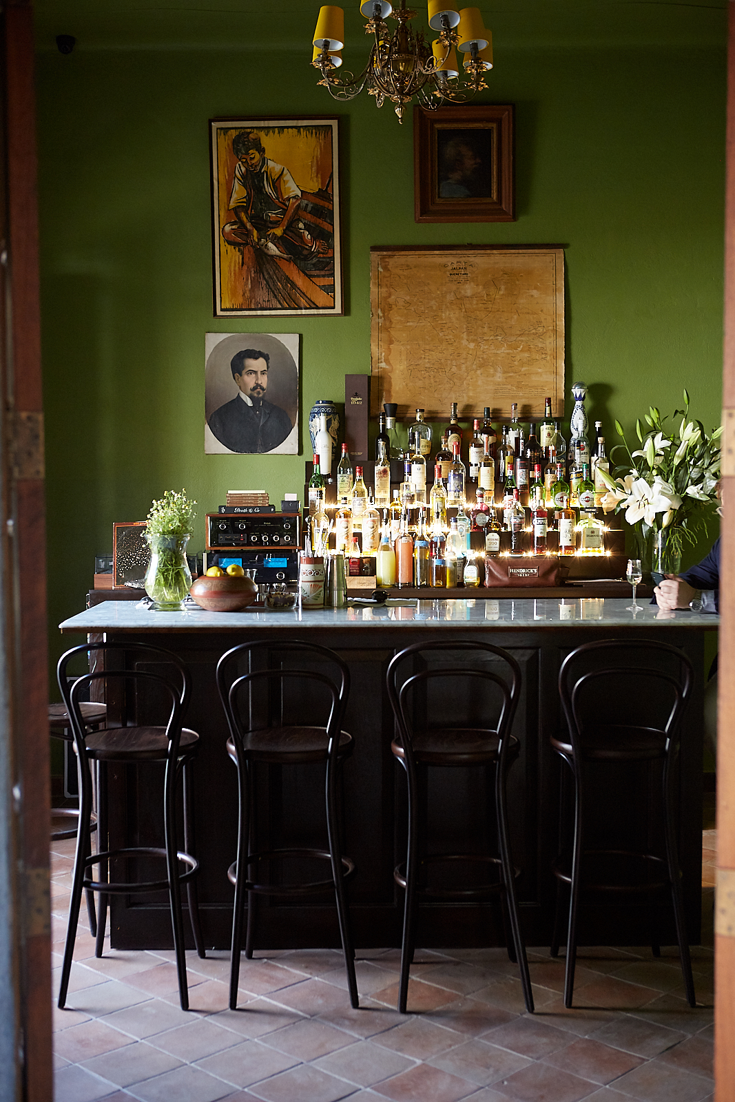 Our first night all together in San Miguel we were treated to an amazing dinner and tequila tasting prepared by the talented staff at Hotel Amparo, where I was lucky enough to stay for three days. This new luxury boutique hotel opened six months ago has been getting accolades and recognition as one of the best new hotels in the world. It is small, with just five rooms to stay in. Jeff and I fell in love with their cocktail bar, manned by a highly skilled bartender and offering a very eclectic bar menu.