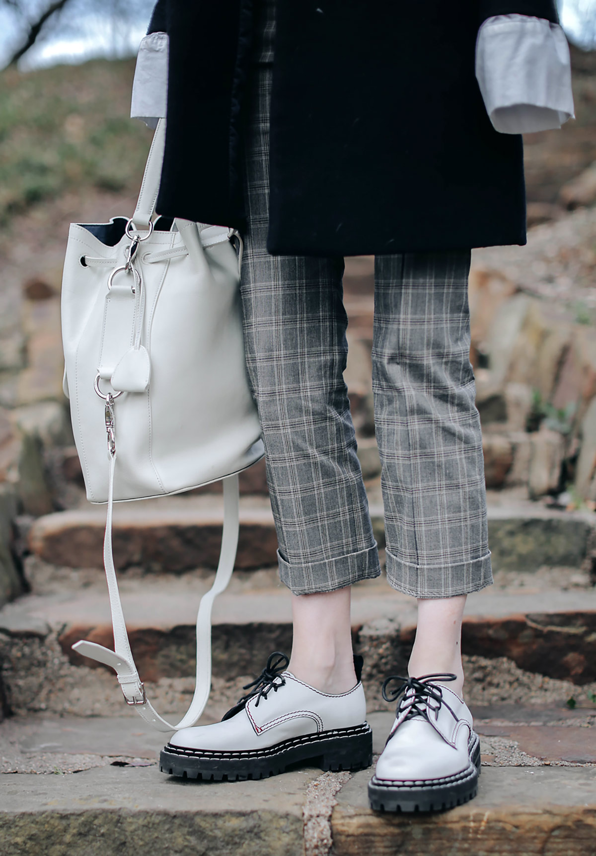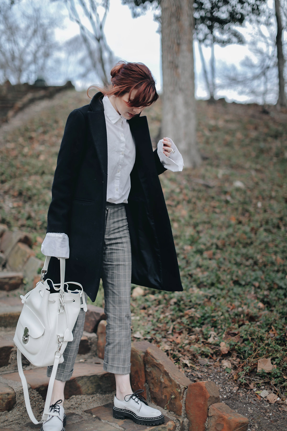 A look from a very cold day last week running errands. I am still obsessing over these Proenza Schouler brogues I got on sale! They are so much fun to style. I love them with colorful vintage dresses or with cuffed Levi’s. I also love them with a tailored look, they make a fun juxtaposition when you mix them in with really classic wardrobe staples.
