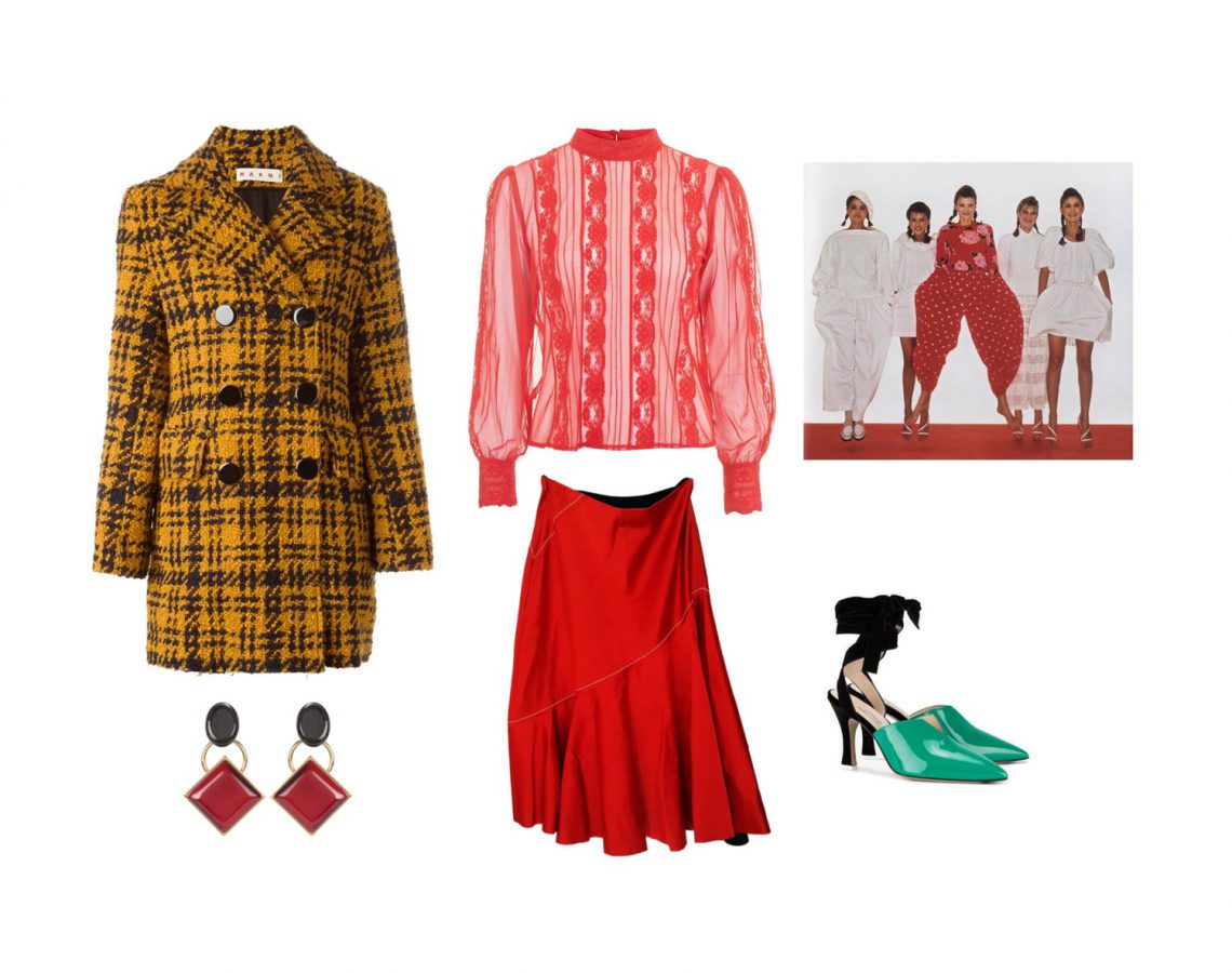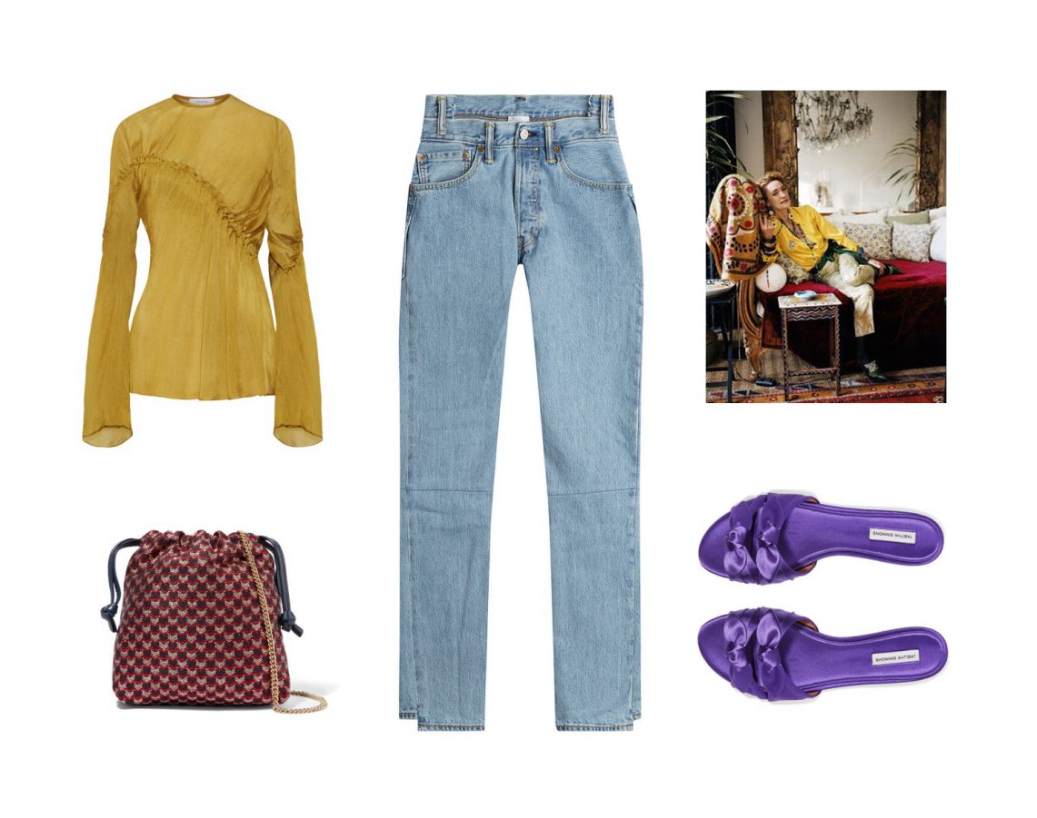 I apologize for my absence the last two weeks, I got so sick with the flu and it took a long time to get over. It really was no fun at all. I really missed styling for the blog while I was out of commission. I could not wait to wear clothes that were not my pajamas and bed slips. While I was sick I watched some technicolor movies (like Ziegfeld Follies and Blithe Spirit) and the vivid color palettes were completely inspiring. I started thinking about the color palettes I wanted to dress in, and some of my favorite inspirations in fashion when it comes to color like Yves Saint Laurent muse Loulou de la Falaise and Kenzo’s vibrant early collections. I love to find clothes that are rich and saturated with color, they make such an amazing touching point for styling and are just so much fun to wear.