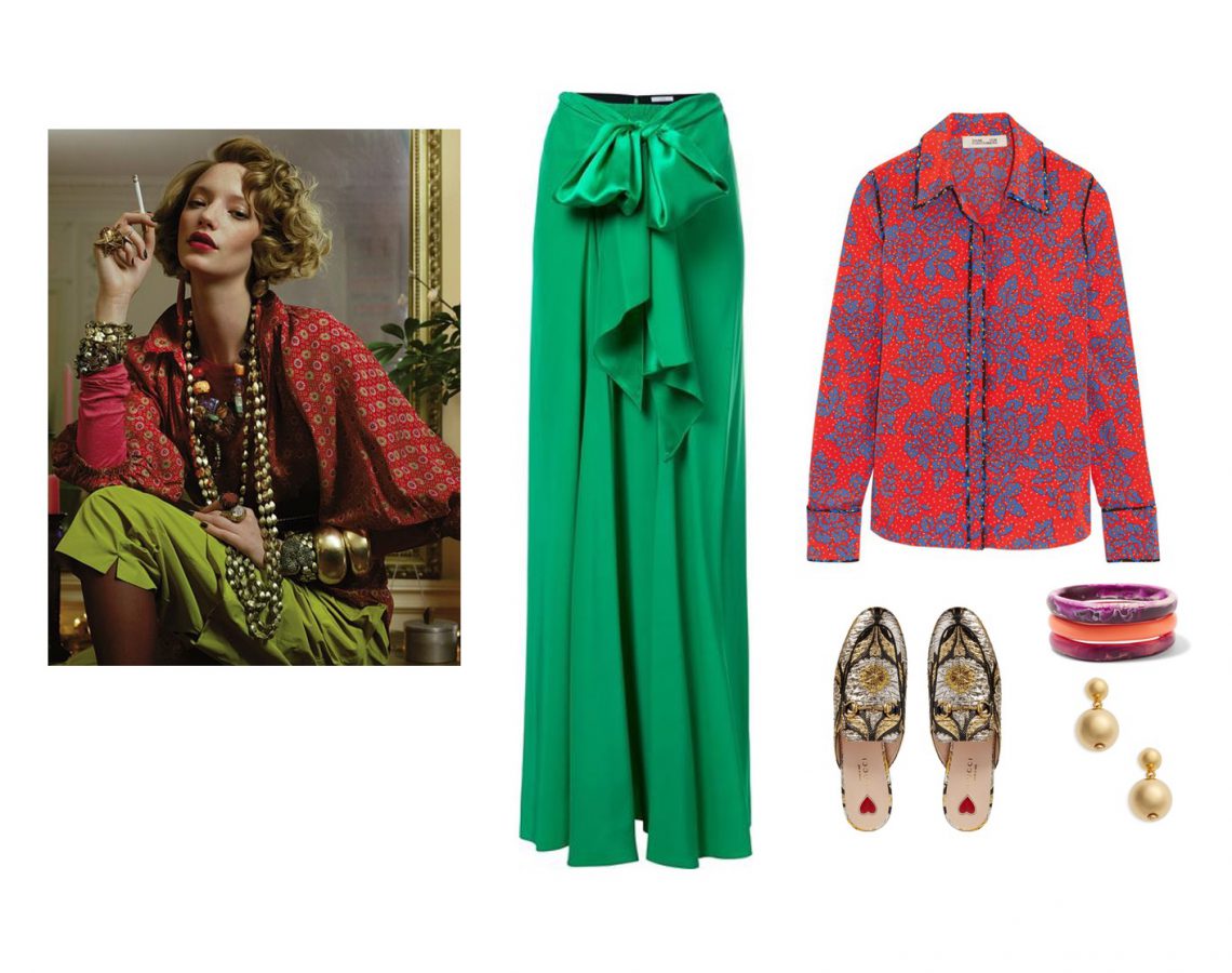 Often women are told to wear bright color only in small doses. I do not believe this must always be the rule! Wearing jewel tones head to toe can make for a stunning look, especially when you play on texture as well. Nothing is quite as luxe as a jewel tone blouse or dress in a sumptuous silk or satin. When you can strike the right combination of colors, I believe more is definitely more. If you look at Loulou de la Falaise’s style, she endlessly demonstrates what fun costume jewelry piled on top of a completely jewel tone outfit can be. I highly reccomend the coffee table book on her home and style for inspiration. She is one of my favorite style icons.