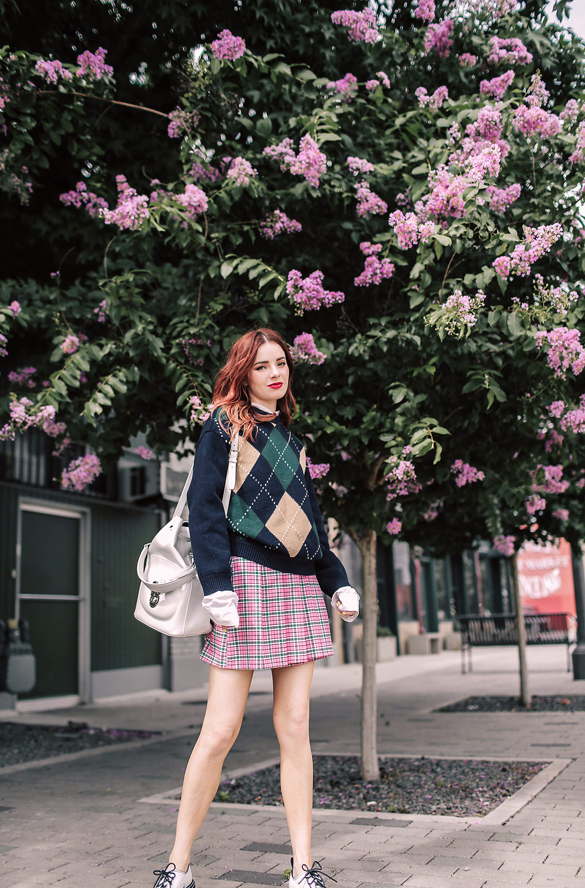love that plaid pink kilt skirt so much! Perfect shoes as well. Great styling.