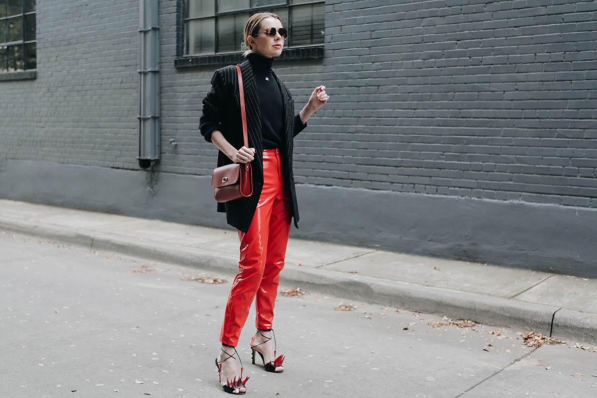 Love these red vinyl pants and your blazer, great look! xo