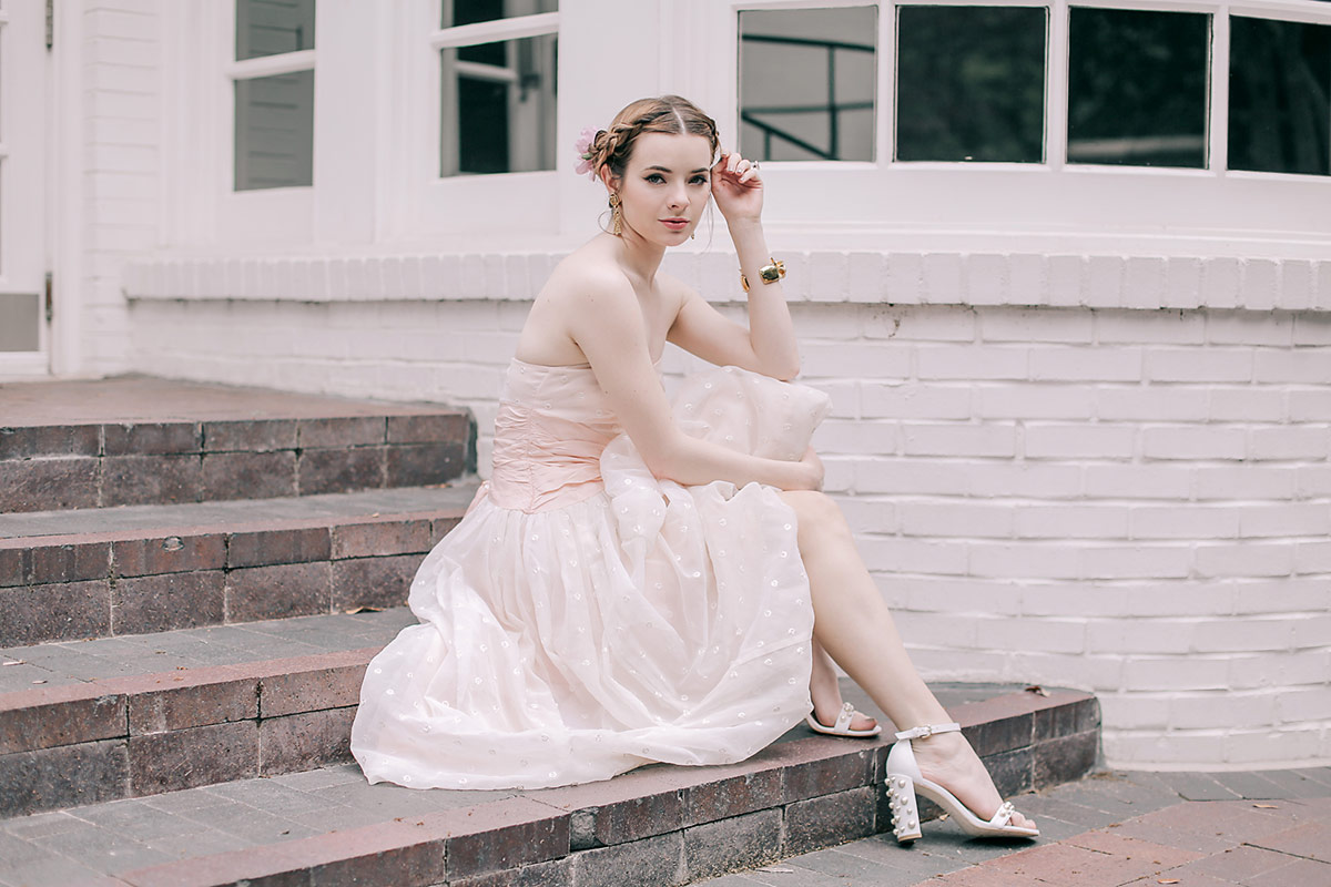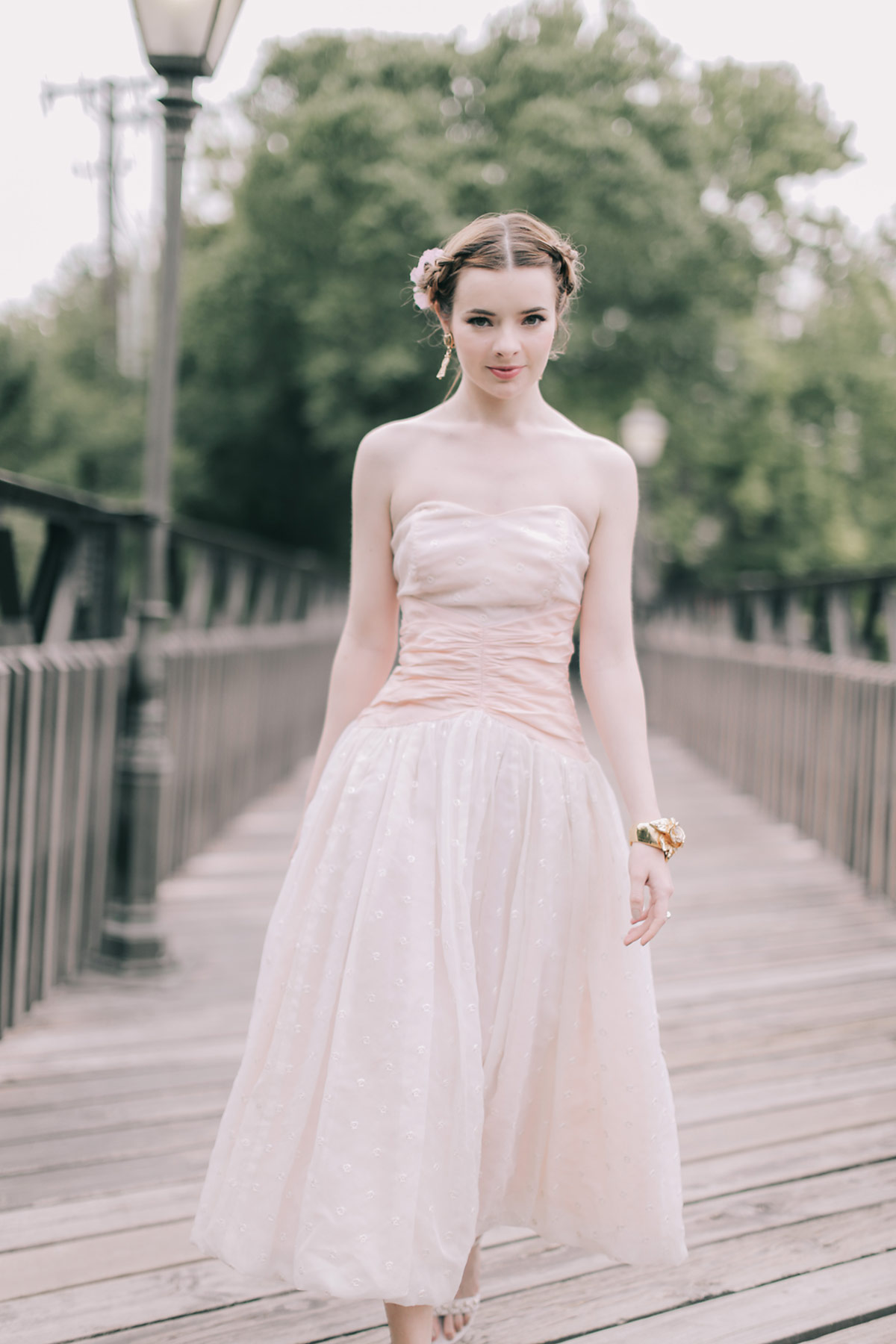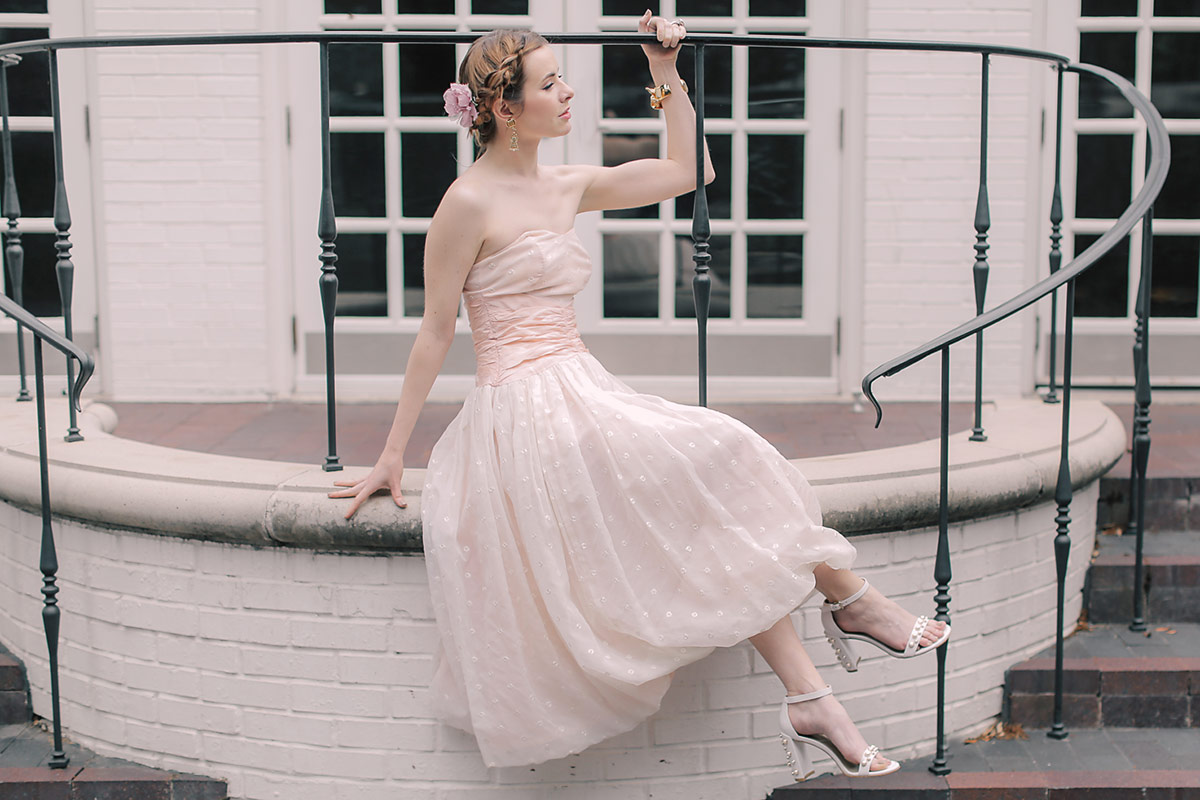 The blush tone to this look suits you perfectly. I’m a huge fan of vintage and can’t wait till we see your wedding photos. This 50’s dress is a favorite silhouette of mine , I love ❤️ the shoes and dress together , great styling !