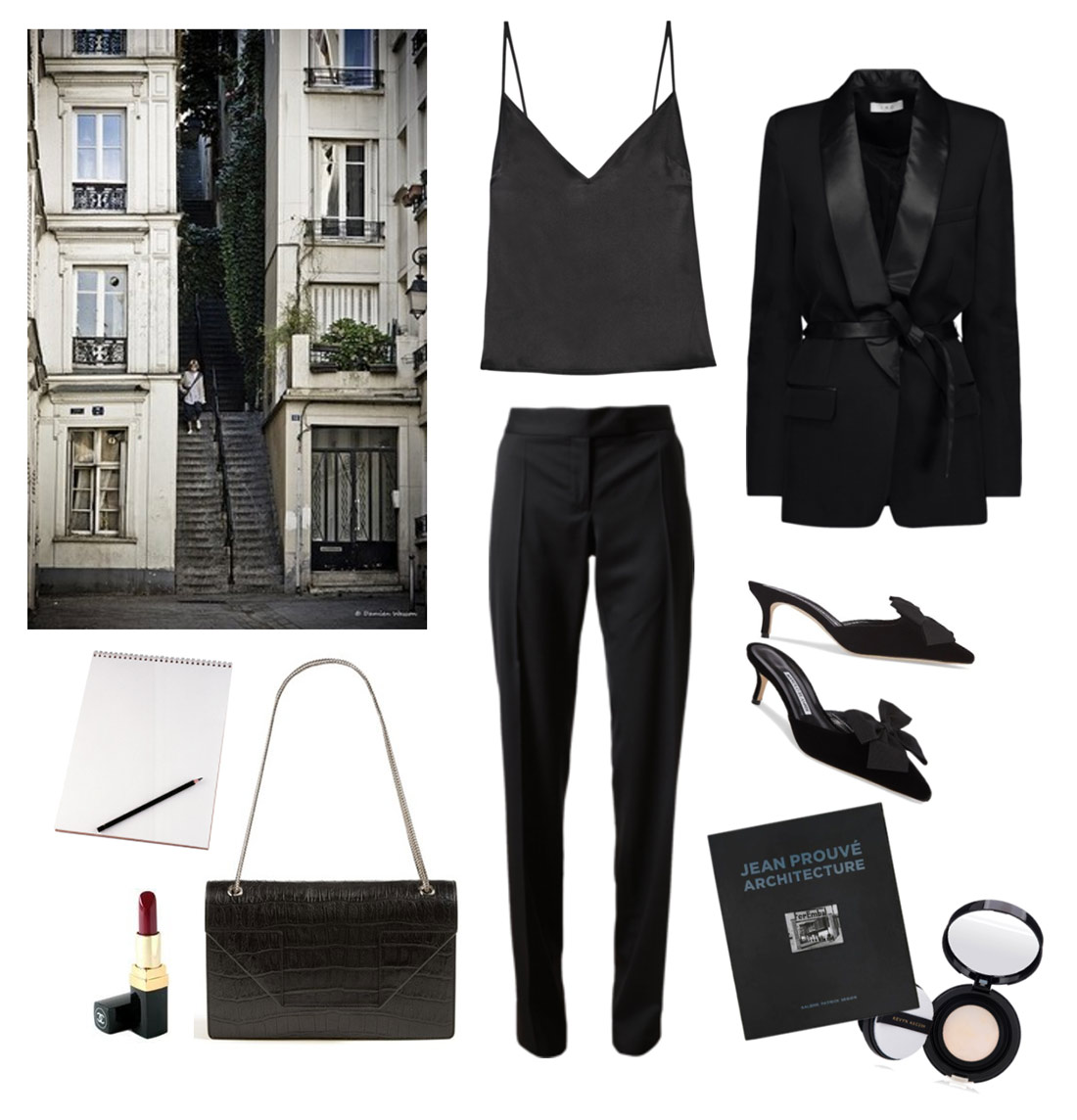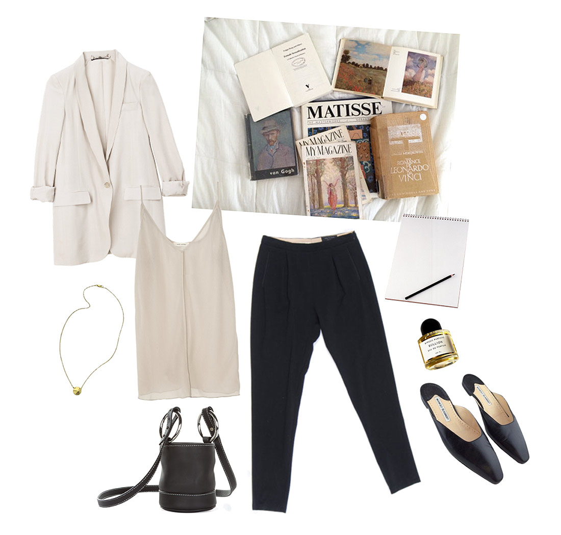 Some items on my current want list. I’m trying to clean my closet right now and while I’m all stocked up on 80s poof dresses, I realize I’m lacking in some wardrobe basics, like a sleek pair of black trousers. Gravitating towards the unusual and bizarre is just kind of my style and part of who I am, but there will always be part of me that wishes I could be more minimalist at times. These are some the more parred down looks I dream about. I really do love a good Outnet find like this smoking jacket!