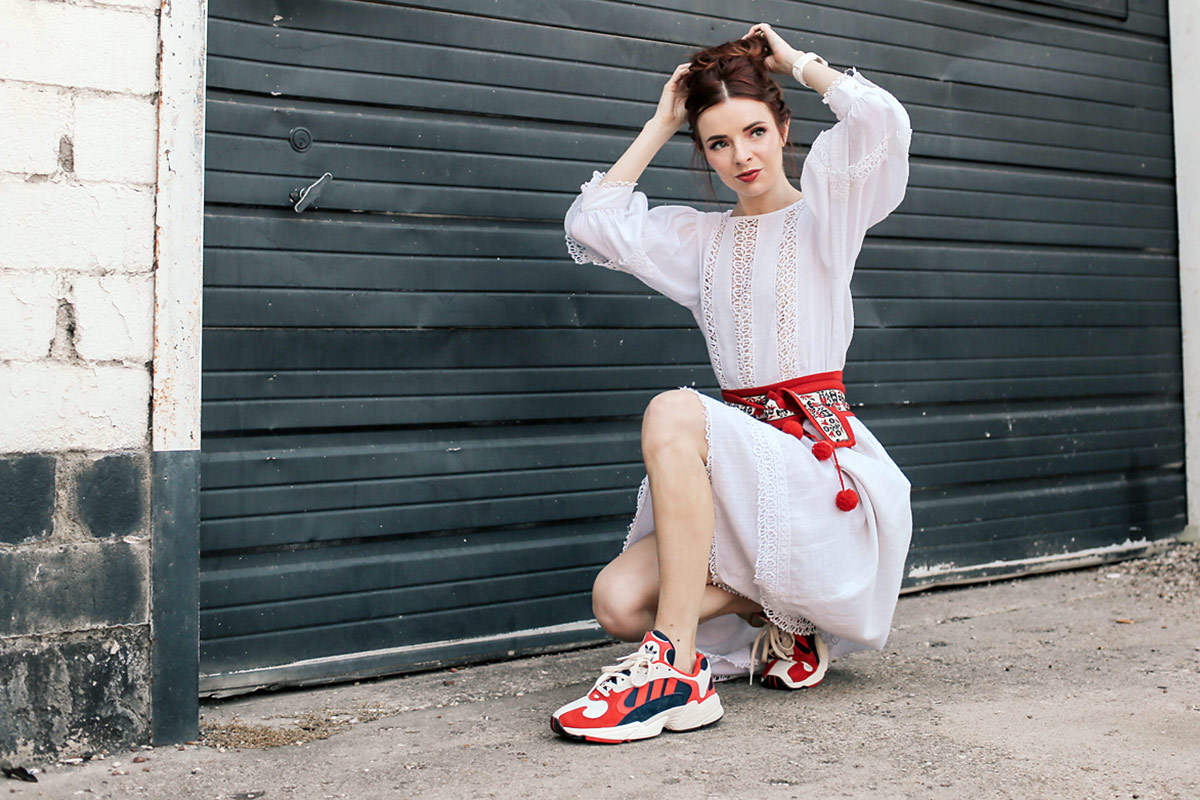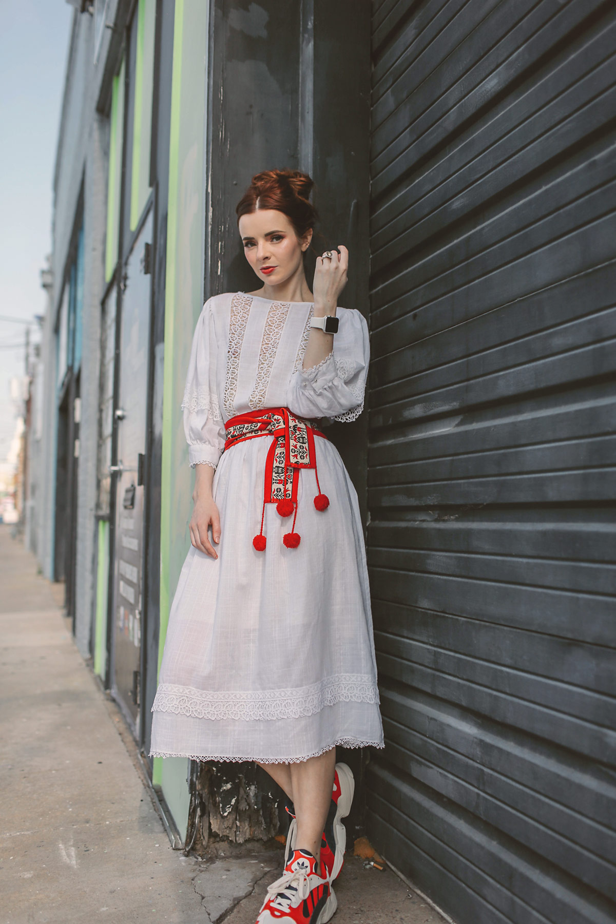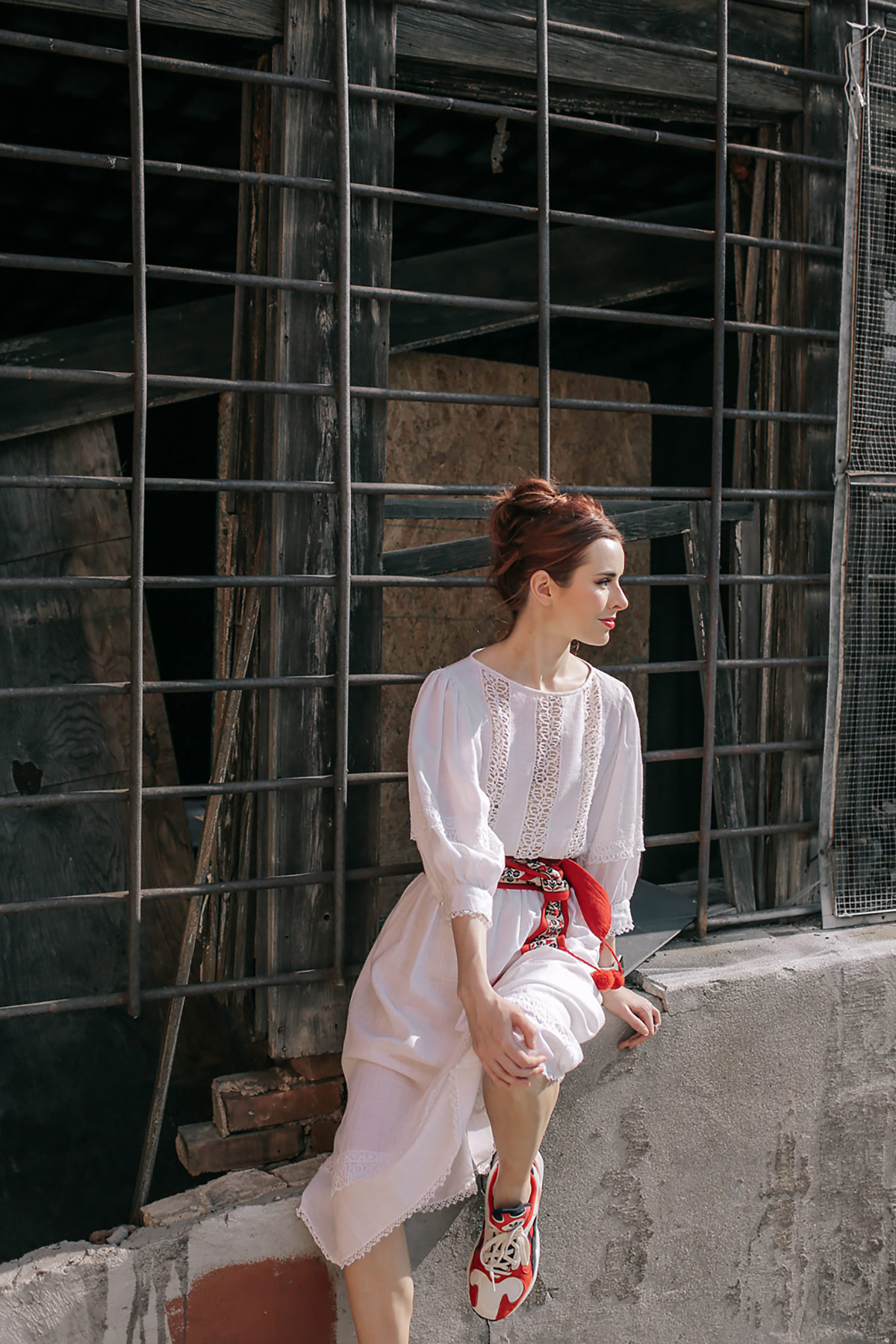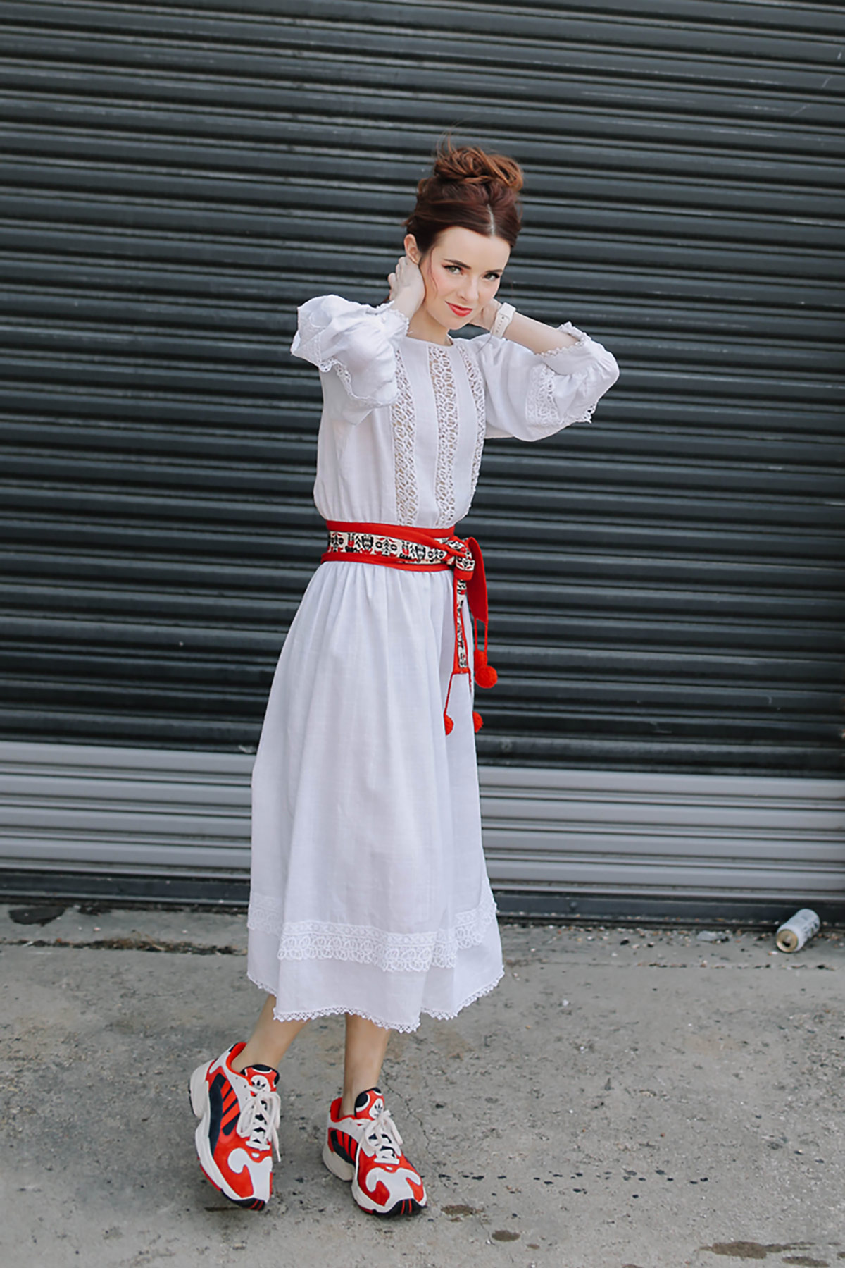 Here I am wearing the Yung 1 sneakers with a 70s does Edwardian dress from Prototype Vintage as well as a vintage belt.