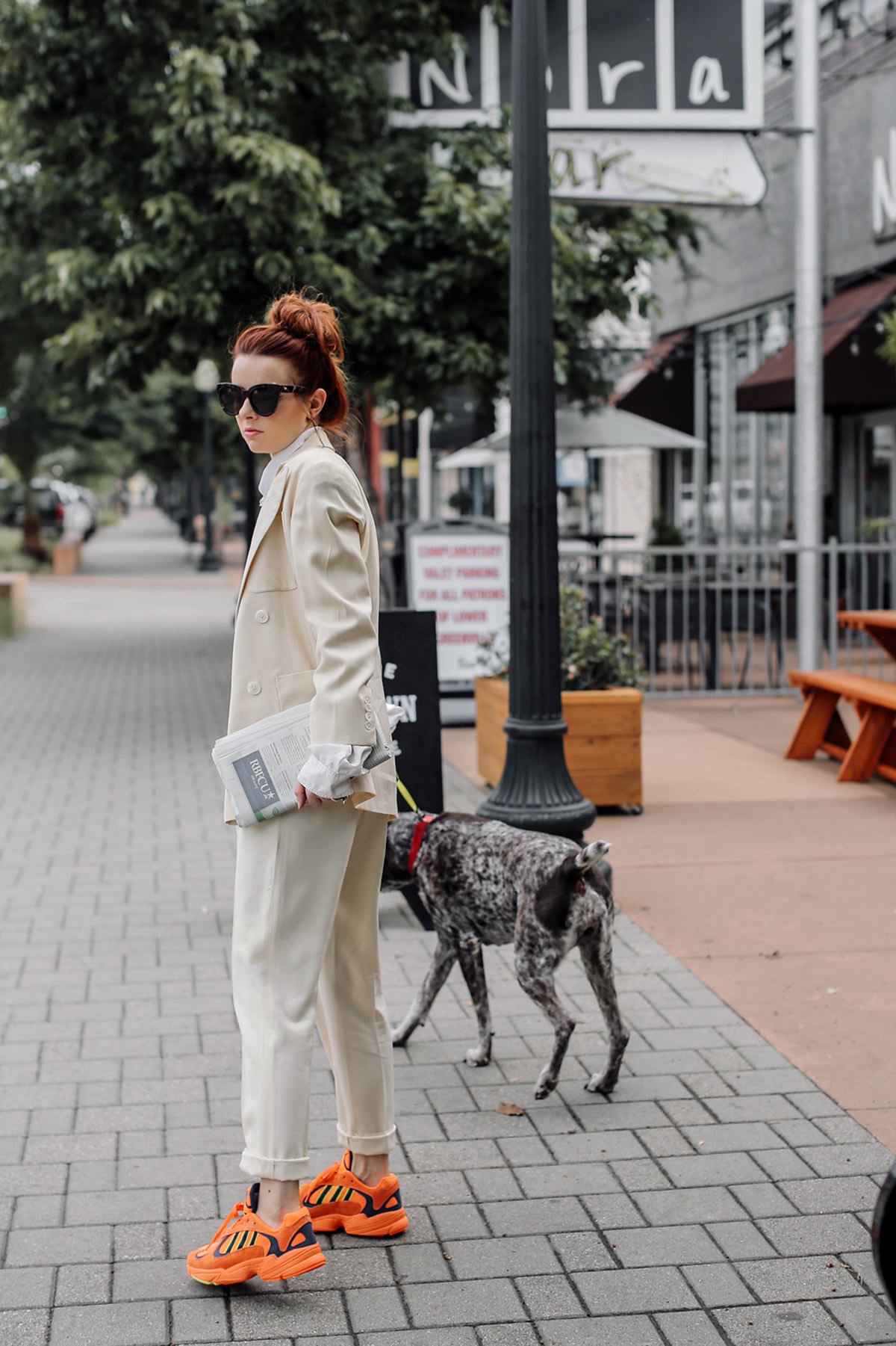 I’ve been pondering the ugly dad sneaker the last few months. The idea of the infamous Balenciaga Triple S sneakers intrigued me at first, but the attraction fizzled almost as soon as it started. As so often happens in the fast-moving age of Instagram, these sneakers reached peak saturation too soon and every time I saw them on my Instagram feed they became less appealing to me. Still, I have a soft spot for ugly-cute shoes, particularly those with outsized proportions.  I wanted a fun sneaker.