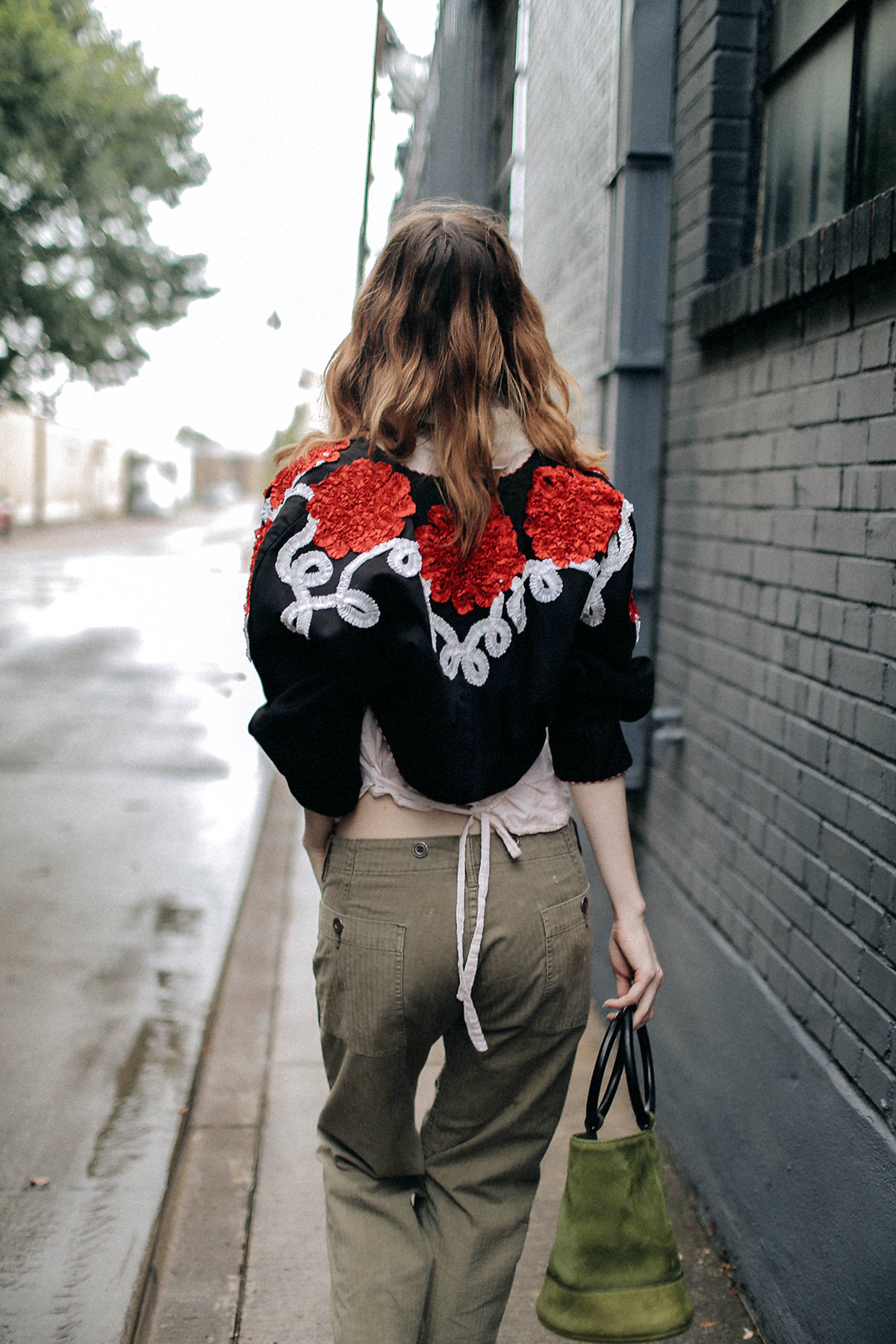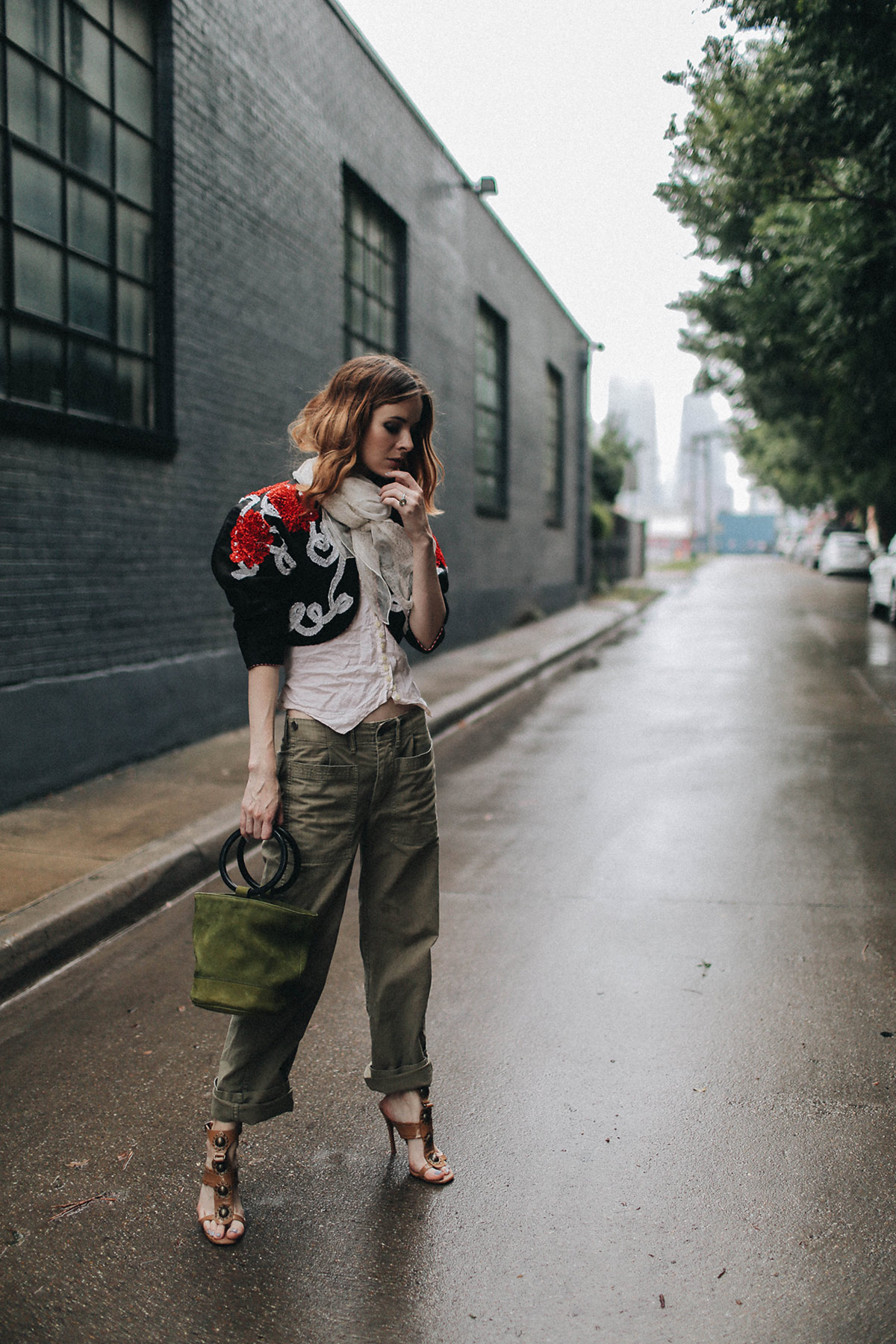 I’m literally wearing nothing new here except the Simon Miller bag which you can purchase here! The pants are RRL that I bought from the boutique in New York about six years ago. The vest is from my mom’s old clothing line Atlantis Underground. The scarf is very old Club Monaco. The shoes are Alaia!