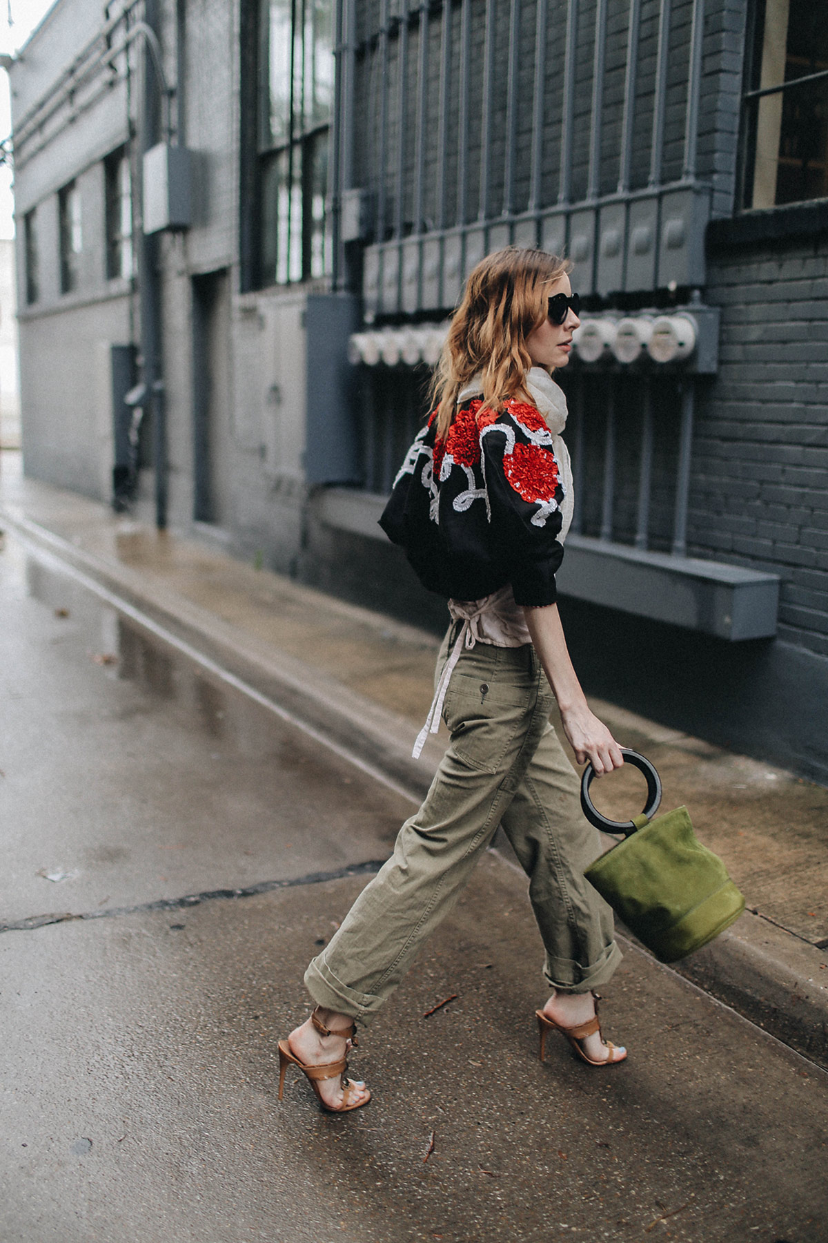 The khaki trousers look so cool with the vibe, weather and the whole outfit! <3 Love how you kept the bottom half of your outfit simple but went all out with the jacket! It's stunning <3