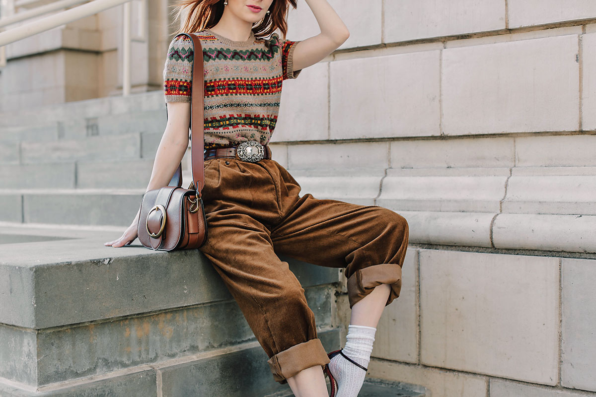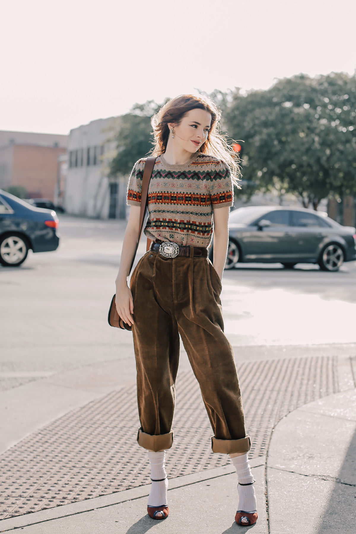 The corduroy pants I am wearing below are actually a new (vintage) purchase. They are vintage Ralph Lauren (notice a trend??). These pants only cost me 14 dollars. These pants make me yearn for crisping leaves and chilly nights! I am going to be wearing these constantly when the temperatures drop. They’d look great with a flannel shirt tucked in and cropped nubby sweater.