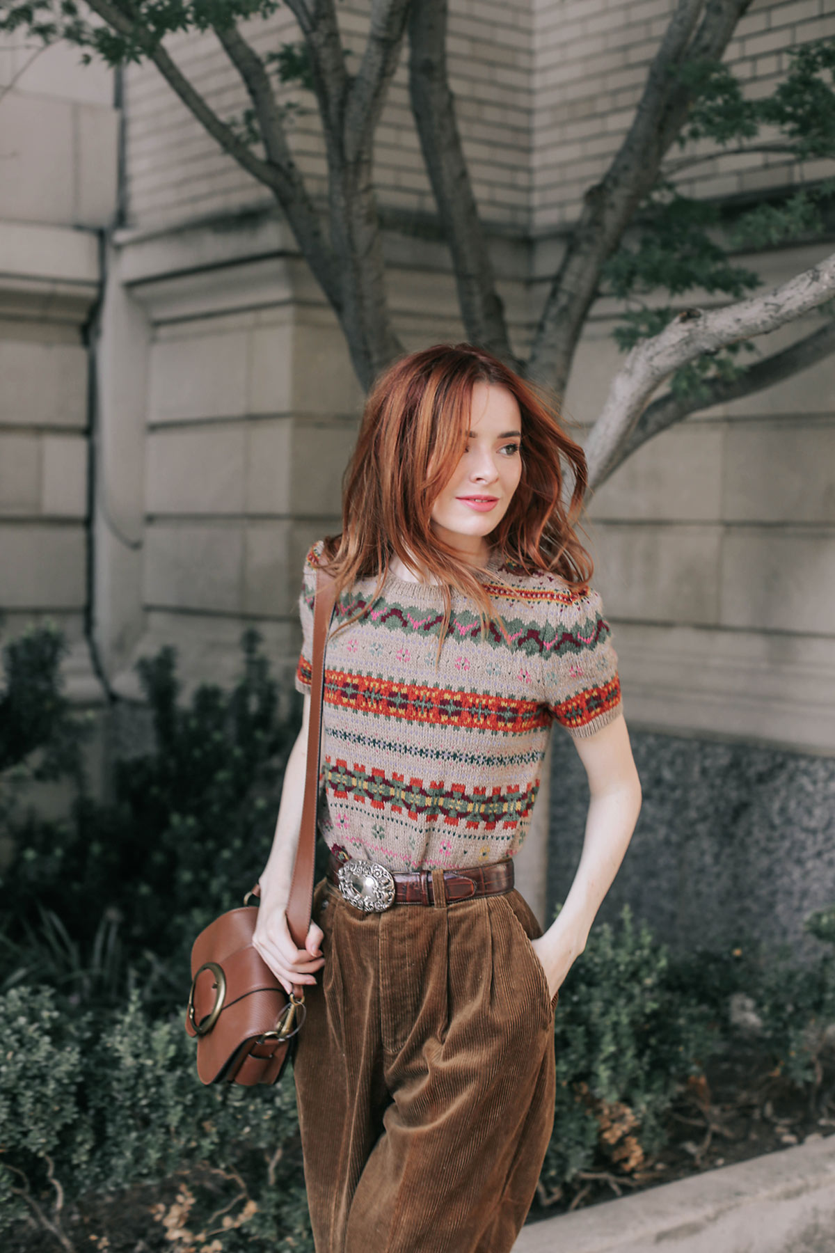 I’ve also been really into styling fair isle knits lately. I went into my storage to get out some sweaters for fall and cherry picked everything fair isle. As a lifelong Ralph Lauren collector, I have quite a bit of fair isle in my sweater pile. I’ve even been looking at 80’s Ralph Lauren advertisements for some styling inspiration. I also found an amazing cropped chunky fair isle cardigan on Etsy a few weeks ago that I am saving for cooler weather (it is incredibly heavy). Can’t wait to do more styling with these pieces. The puff sleeve sweater I am wearing below is Polo Ralph Lauren from several years ago.
